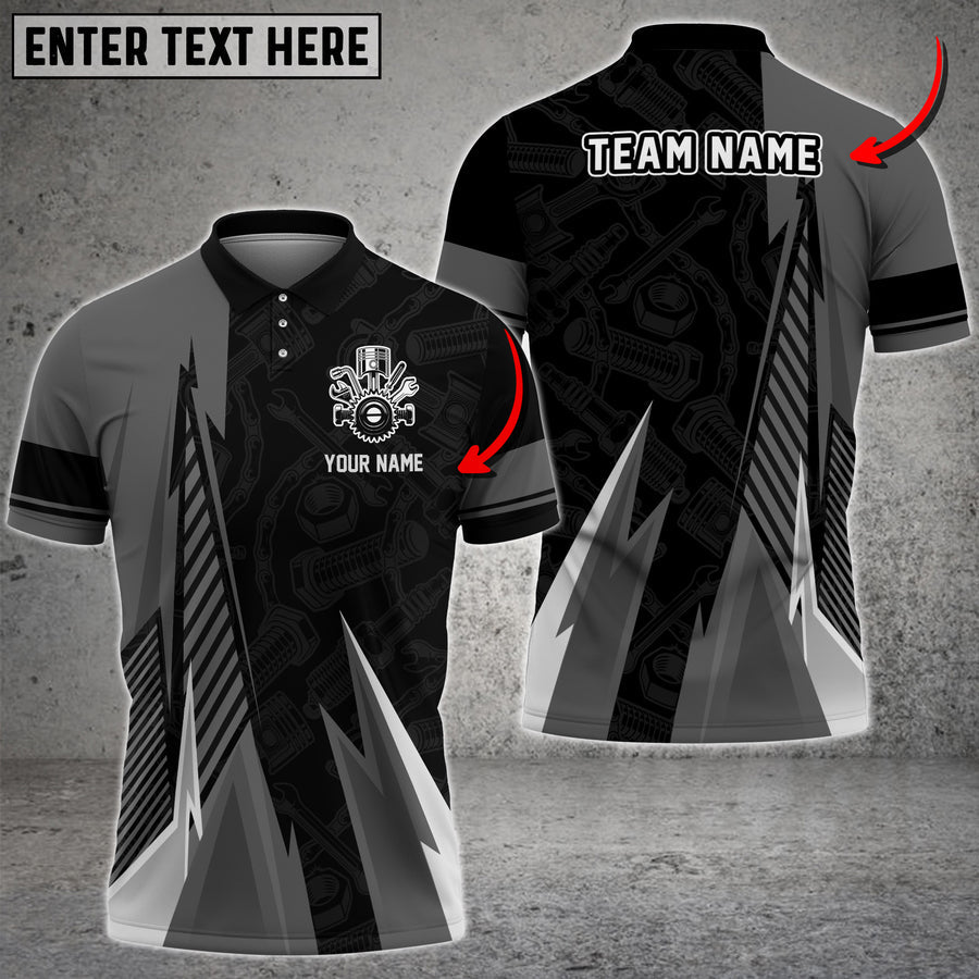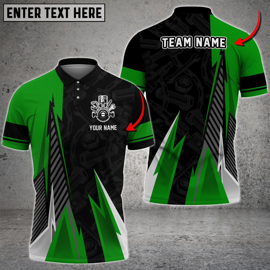 Lasfour Auto Mechanic Custom Name Pattern Multi Color Printed 3D Polo Shirt TO3495