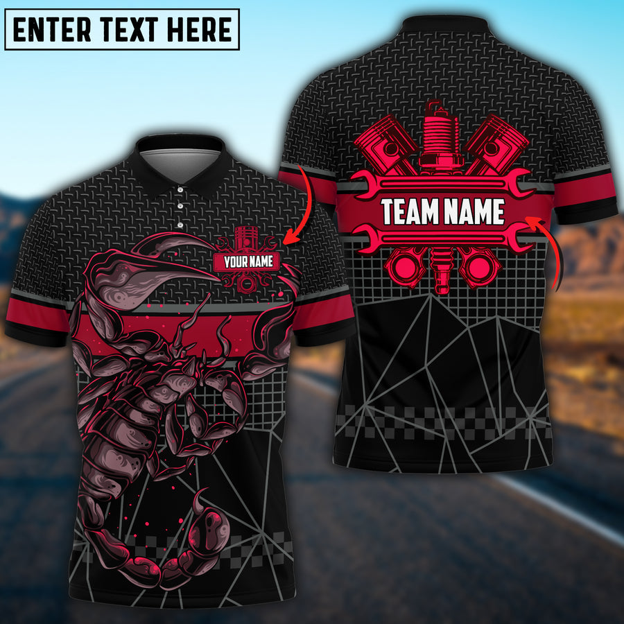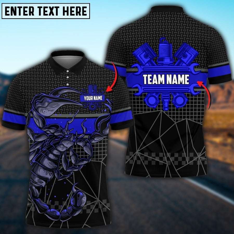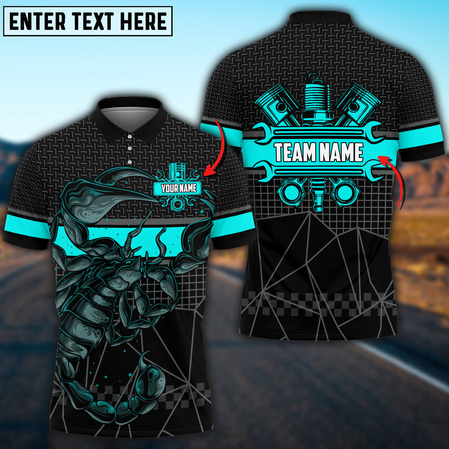 Lasfour Mechanic Scorpion Custom Name Team Multi Color Printed 3D Polo Shirt TO3481