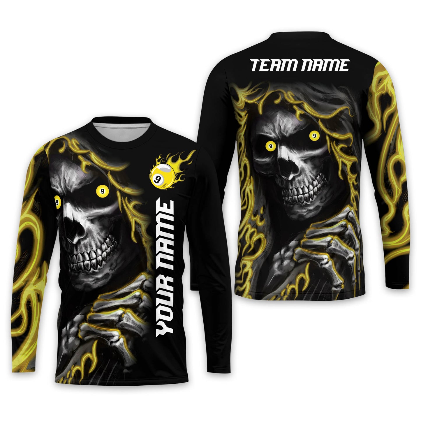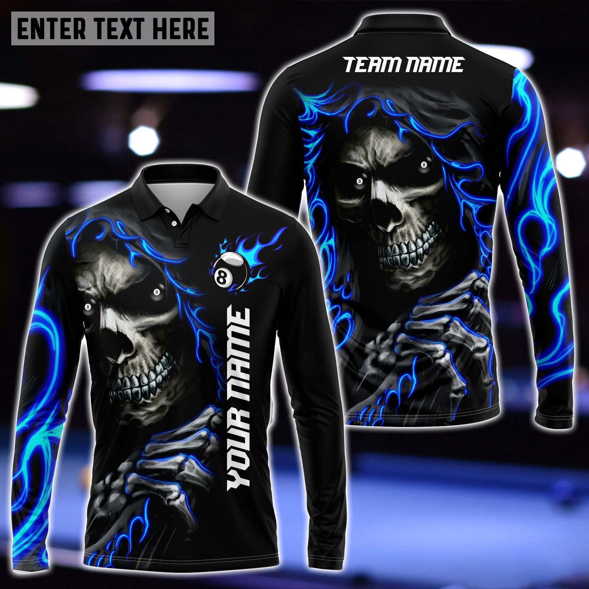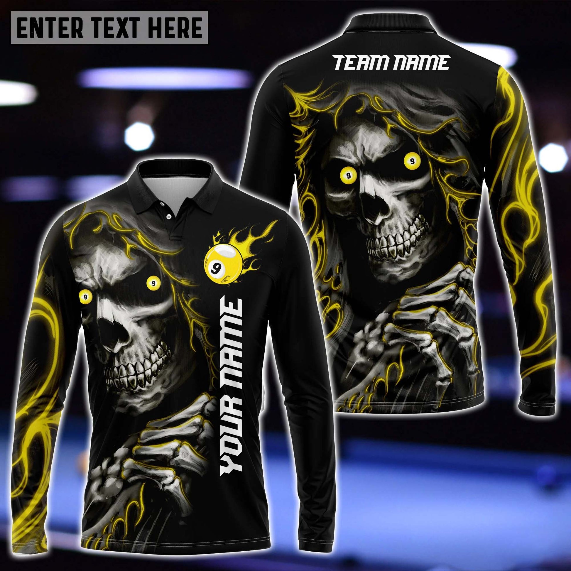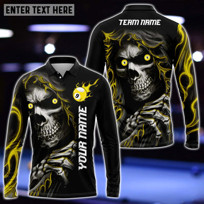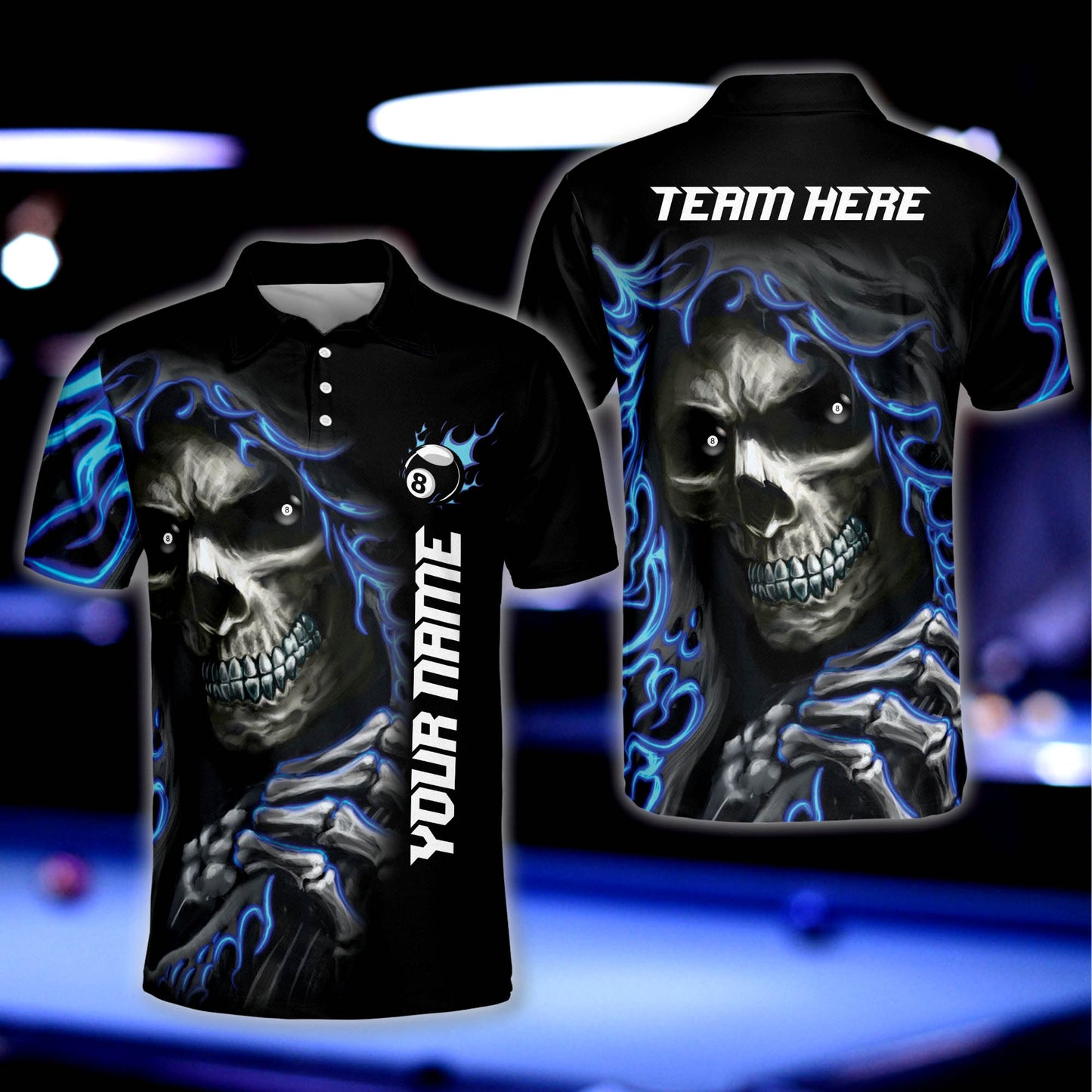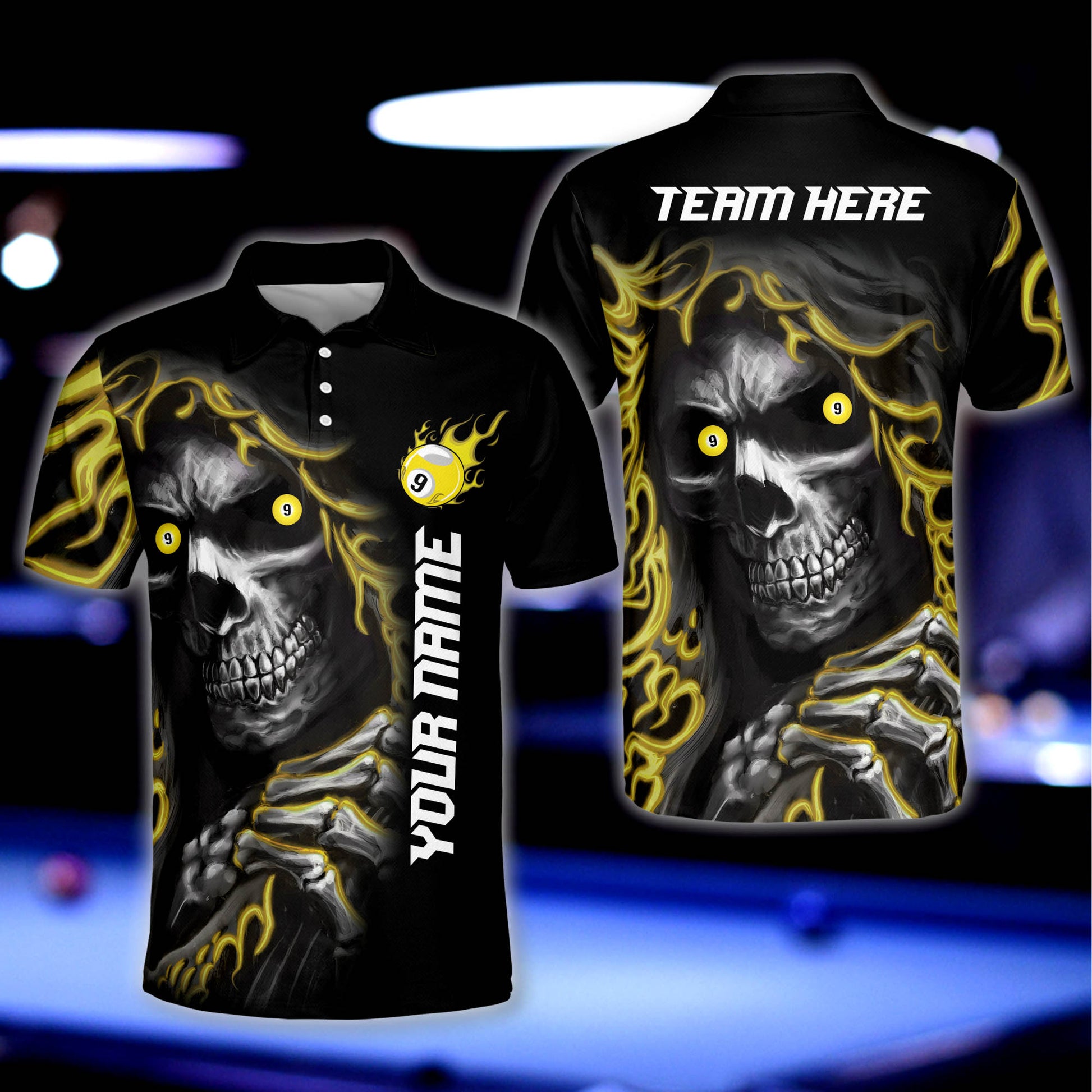 Lasfour Billiard Skull Personalized Name 3D Polo Shirt Gift For Billiard Players BIA0016