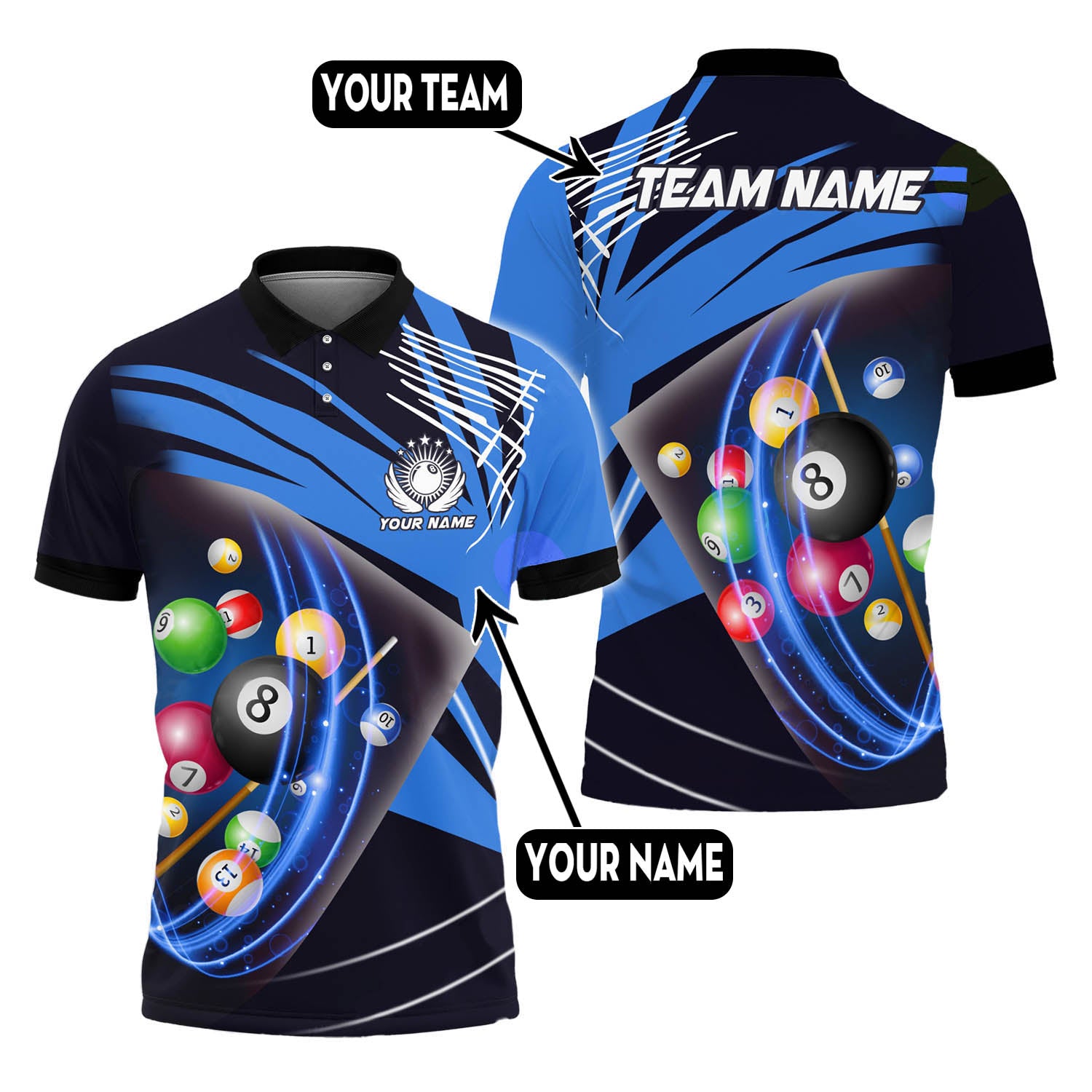 One of the standout features of our Billiard Polo Shirt is the ability to personalize it. Express your individuality and team spirit by adding your own touch to the shirt. With our billiard shirt personalized, you have the freedom to customize your shirt with team logos, names, or personalized embroidery. Stand out from the crowd and showcase your unique style.Functionalities: