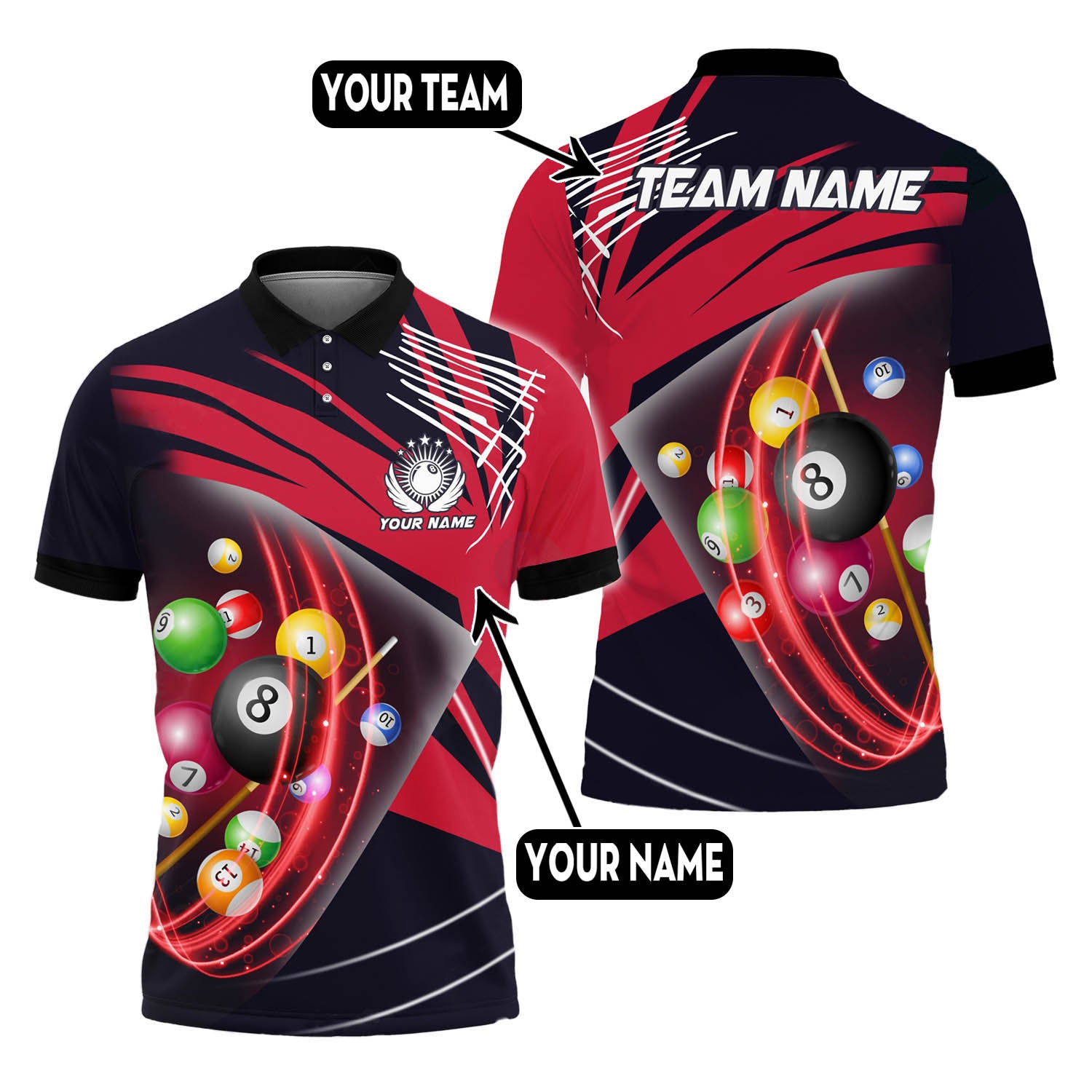 ALL-OVER PRINT- Make your billiards shirts truly one-of-a-kind by customizing it with our all-over print personalization option. Add your own designs, images, or logos to create a unique look that reflects your style and personality.