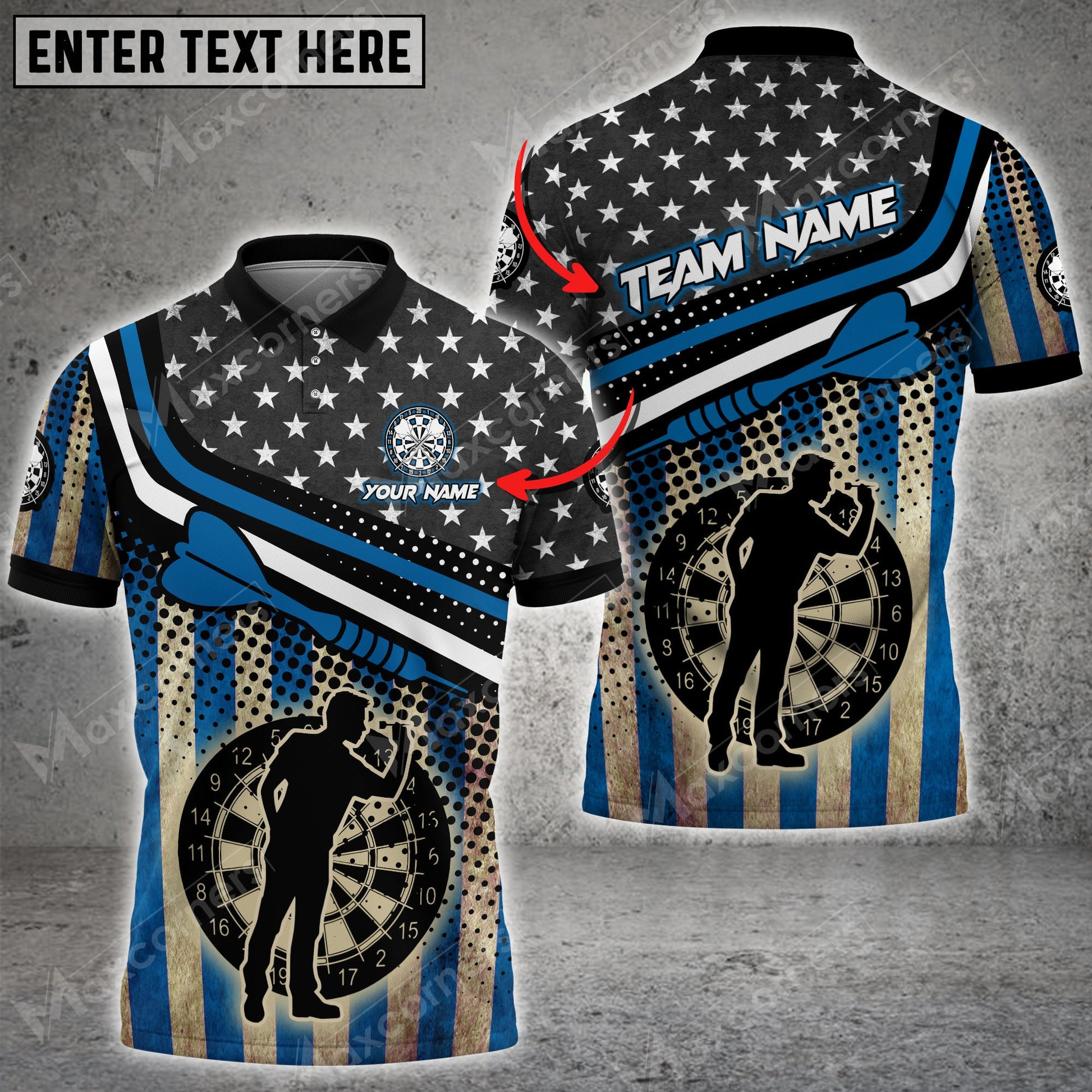 Lasfour Darts USA Flag Color Options Personalized Name, Team Name Unisex 3D Shirt DMA0045