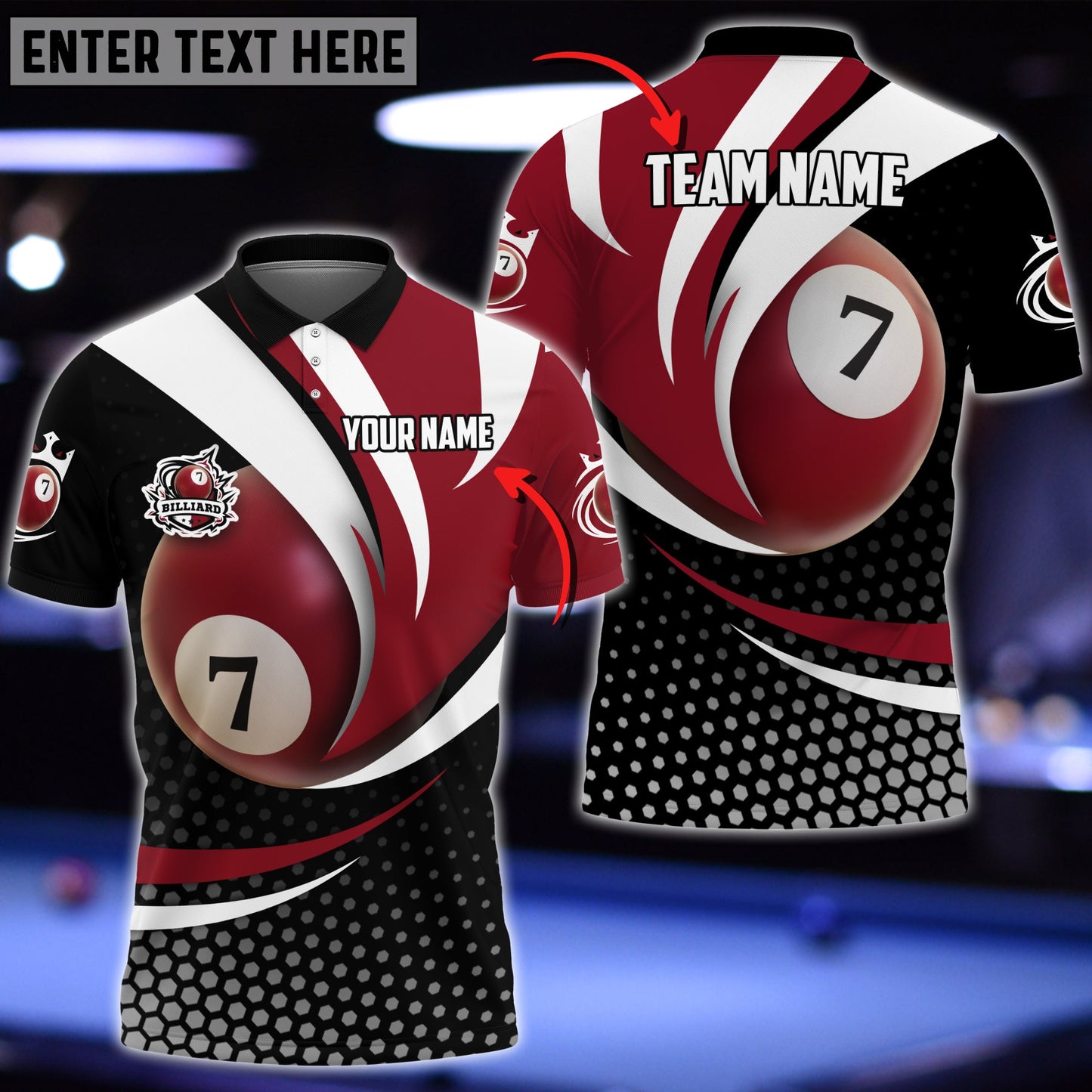 One of the standout features of our Billiard Polo Shirt is the ability to personalize it. Express your individuality and team spirit by adding your own touch to the shirt. With our billiard shirt personalized, you have the freedom to customize your shirt with team logos, names, or personalized embroidery. Stand out from the crowd and showcase your unique style.Functionalities: