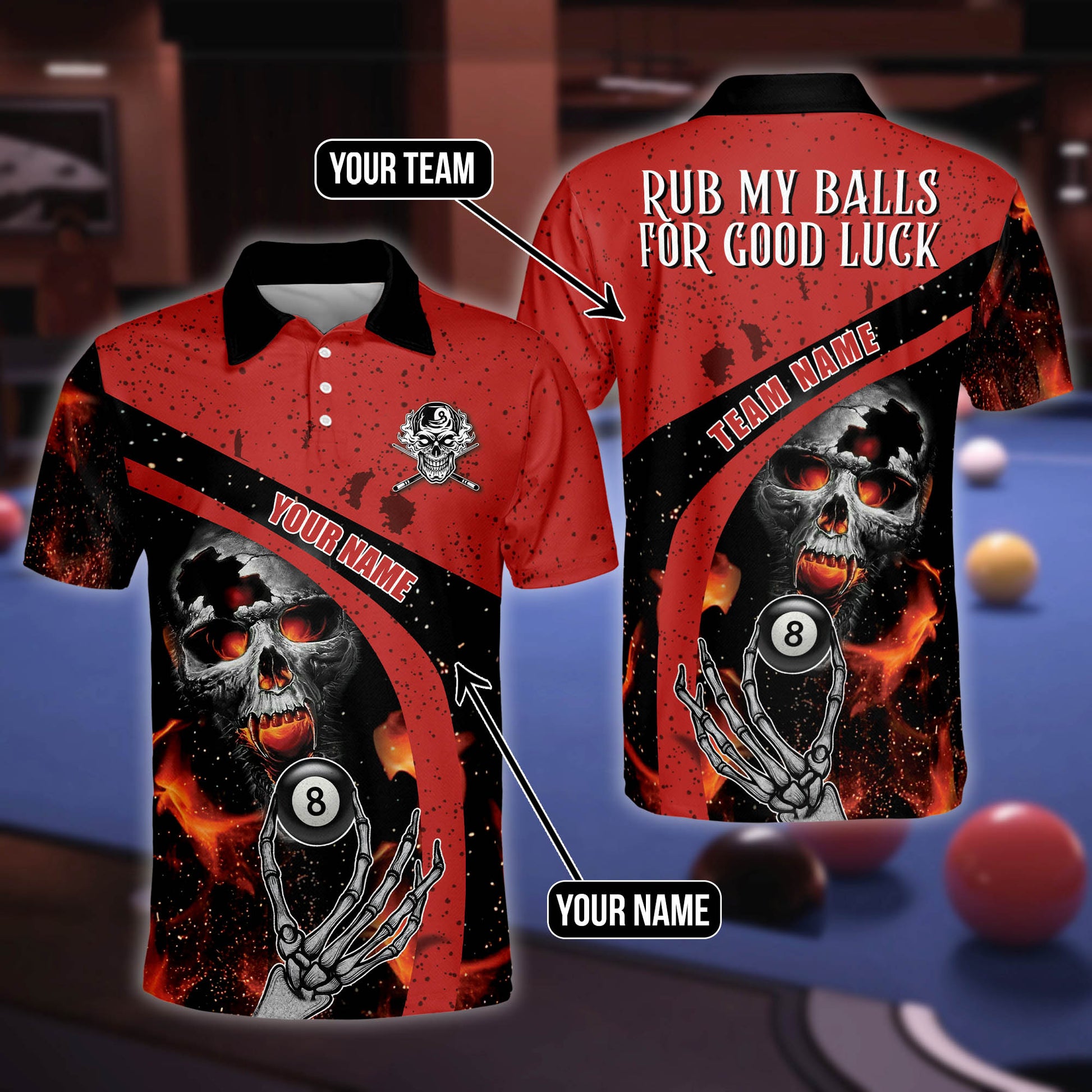 Lasfour Personalized Billiard Ball 8 Skull Team Name Player Polo Shirt BIA0693