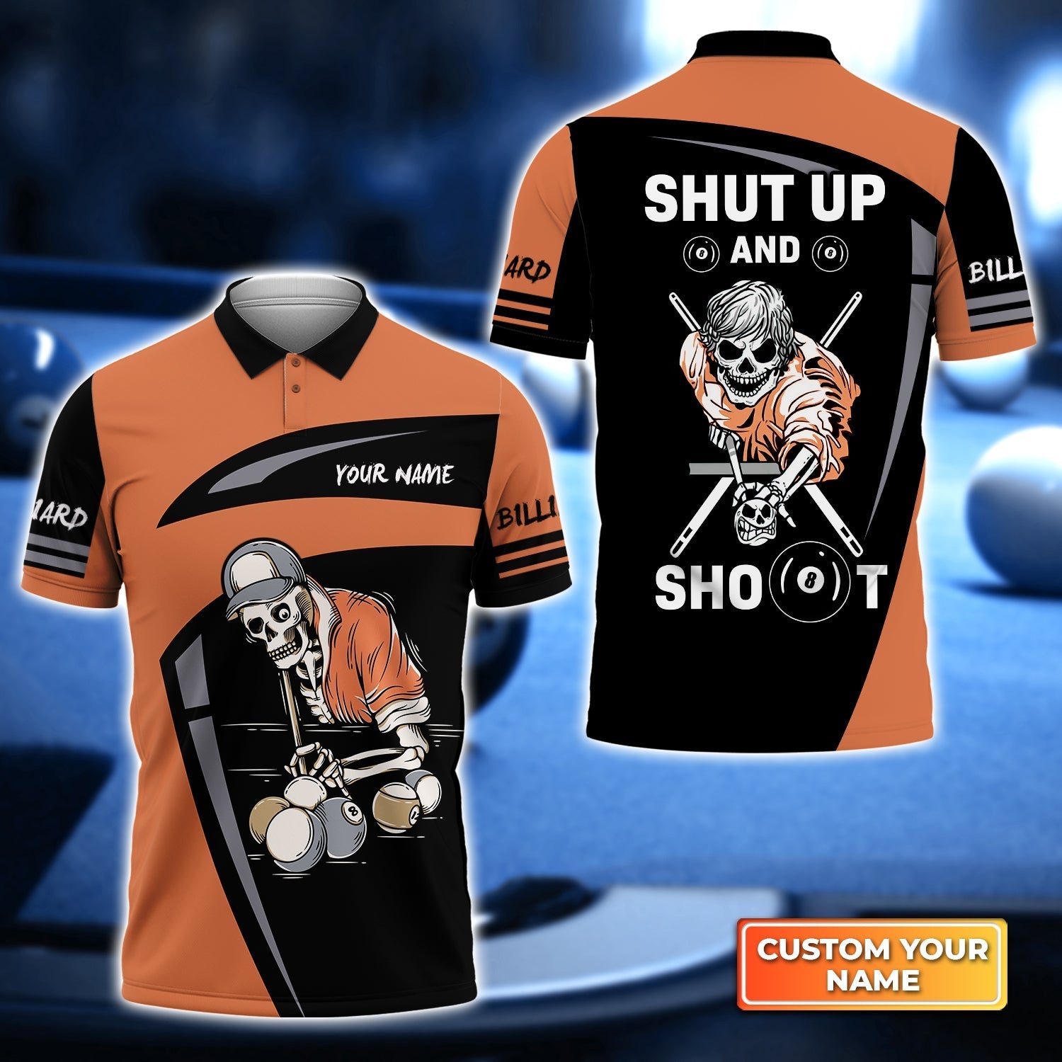 ALL-OVER PRINT- Make your billiards shirts truly one-of-a-kind by customizing it with our all-over print personalization option. Add your own designs, images, or logos to create a unique look that reflects your style and personality.