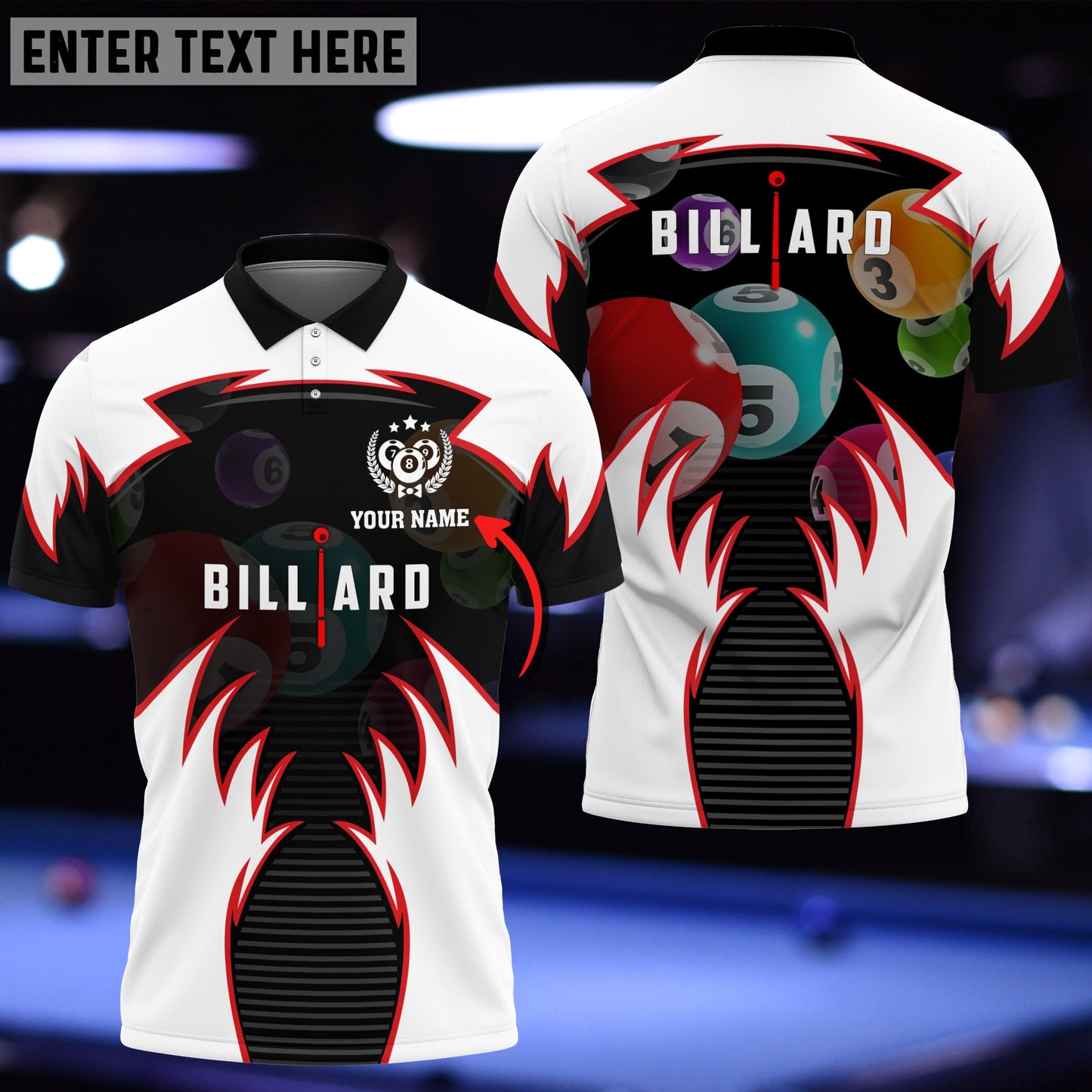 ALL-OVER PRINT- Make your billiards shirts truly one-of-a-kind by customizing it with our all-over print personalization option. Add your own designs, images, or logos to create a unique look that reflects your style and personality.