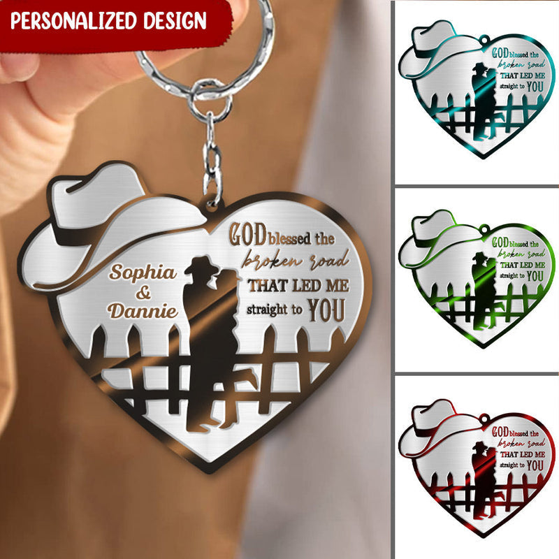 Couple Cowboy And Cowgirl God Blessed Personalized Couple Keychain, Gift for Him Her KO0124