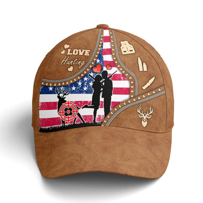 Couple Love Hunting American Flag Leather Style Baseball Cap Lasfour CO0779