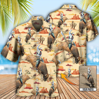 Cowboy Bull Riding Tropical Custom Photo Hawaiian Shirt, Personalized Hawaiian Shirt, Cowboy Shirt HO0038
