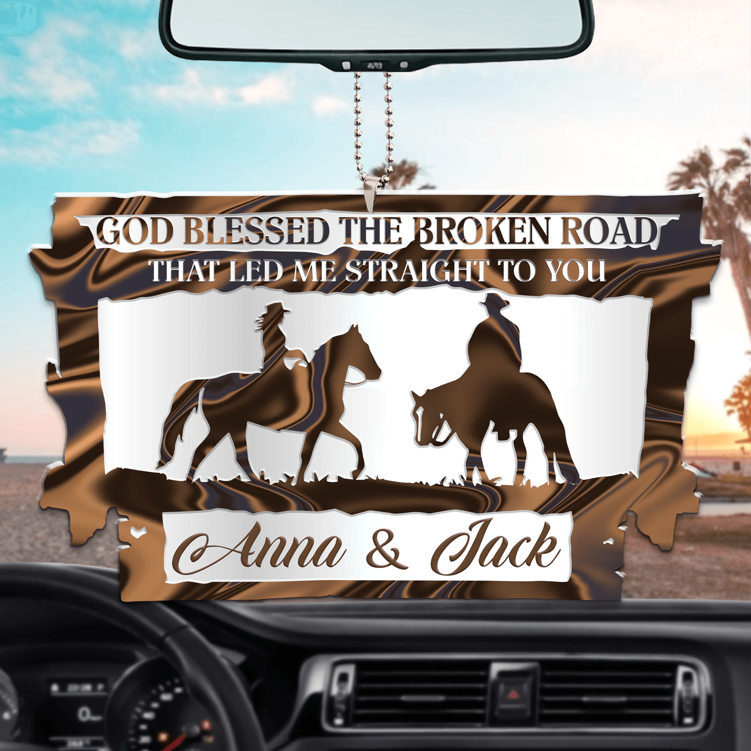 Cowboy Couple In Barn God Blessed Personalized Ornament, Couple Car Hanging Ornament OO0148