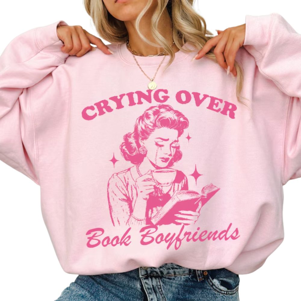 Crying Over Book Boyfriend Sweatshirt, Funny Reading Book Lover Sweatshirts, Romance Reader Sweatshirt 2D0060