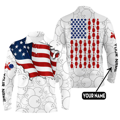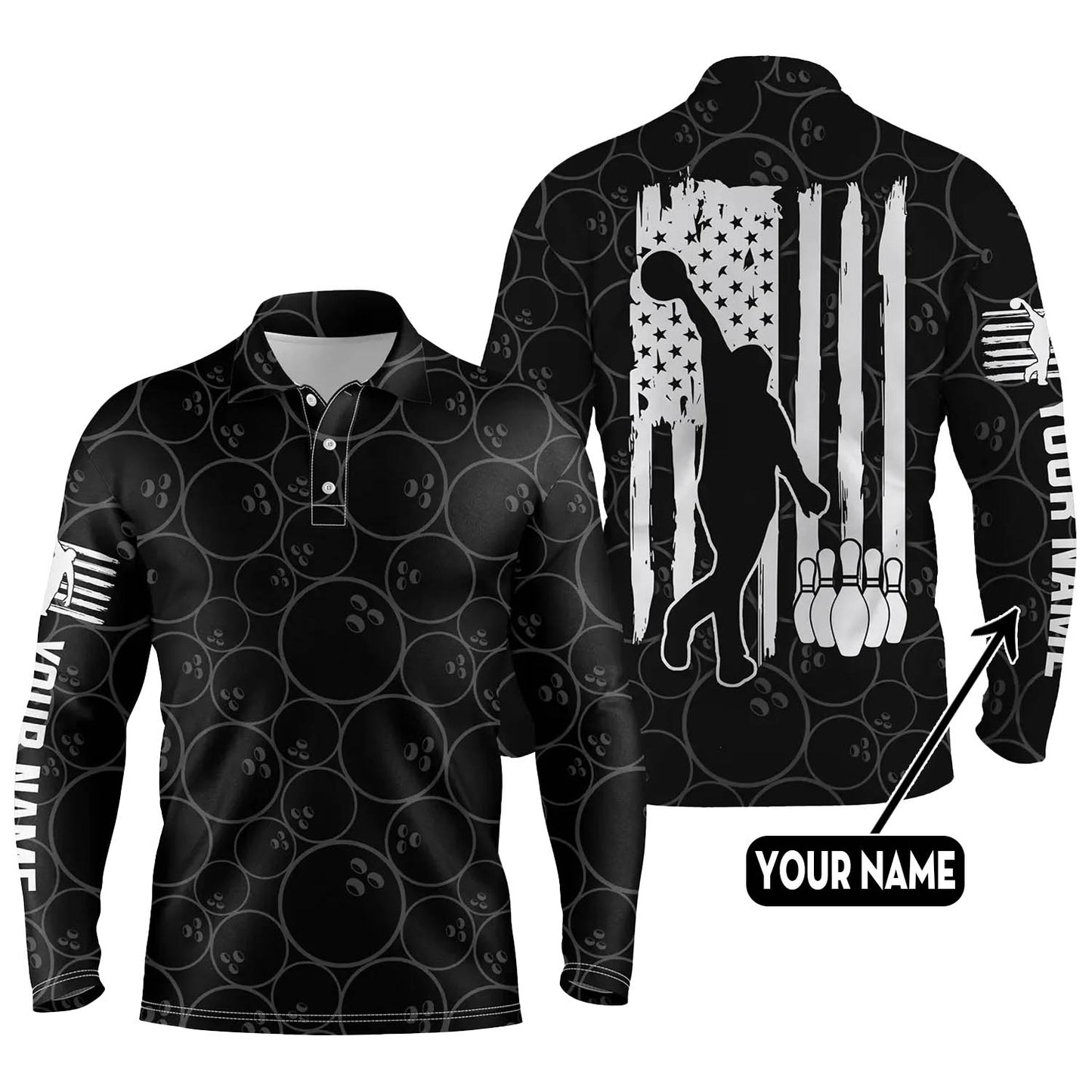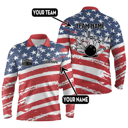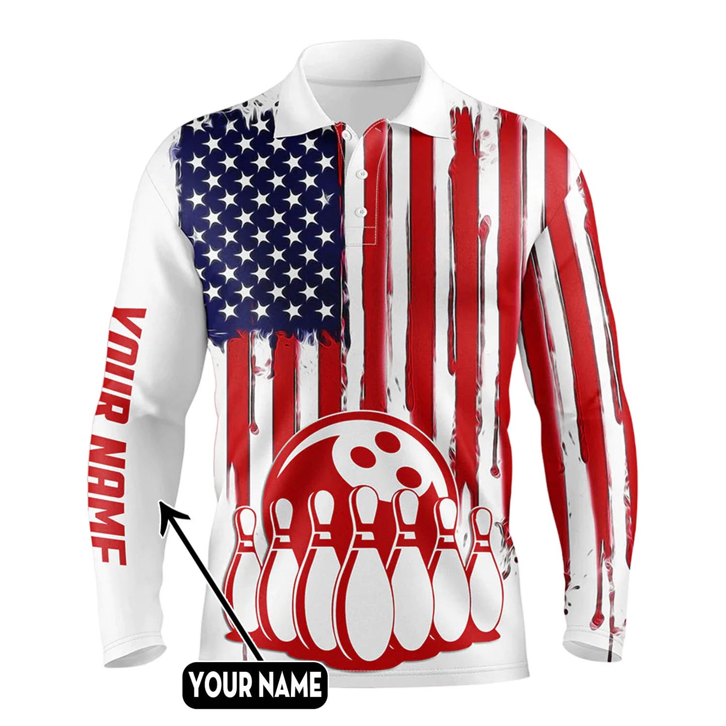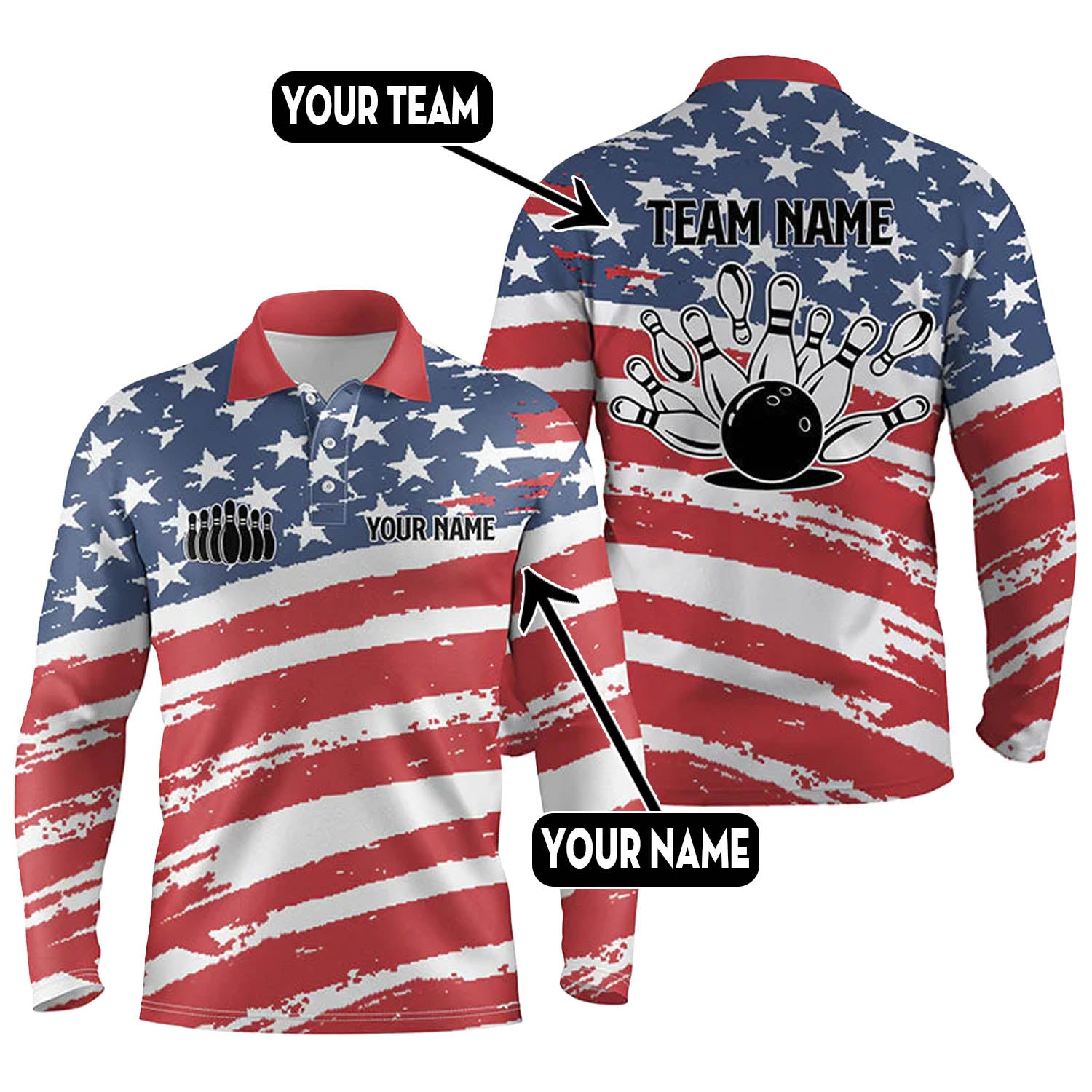 Custom American Flag Bowling Polo Long Shirts BO0291