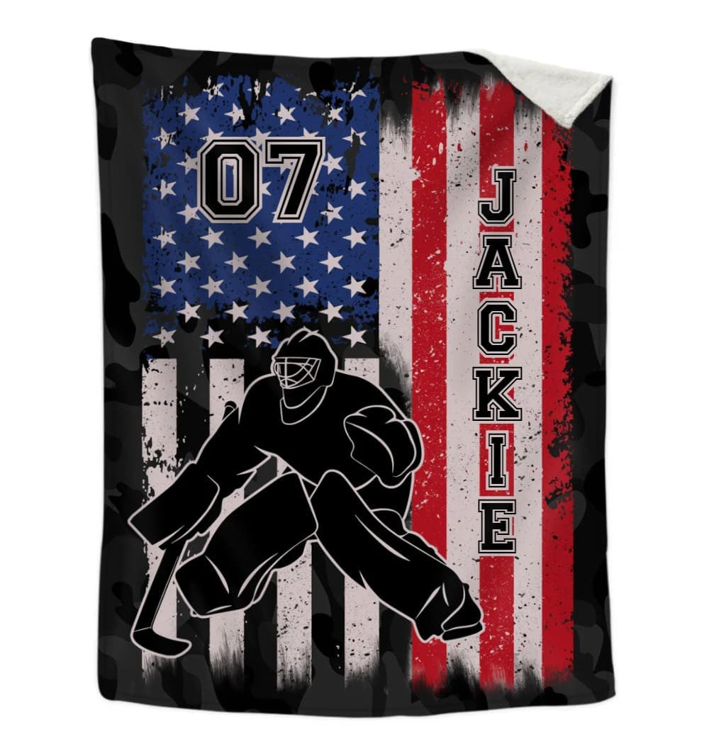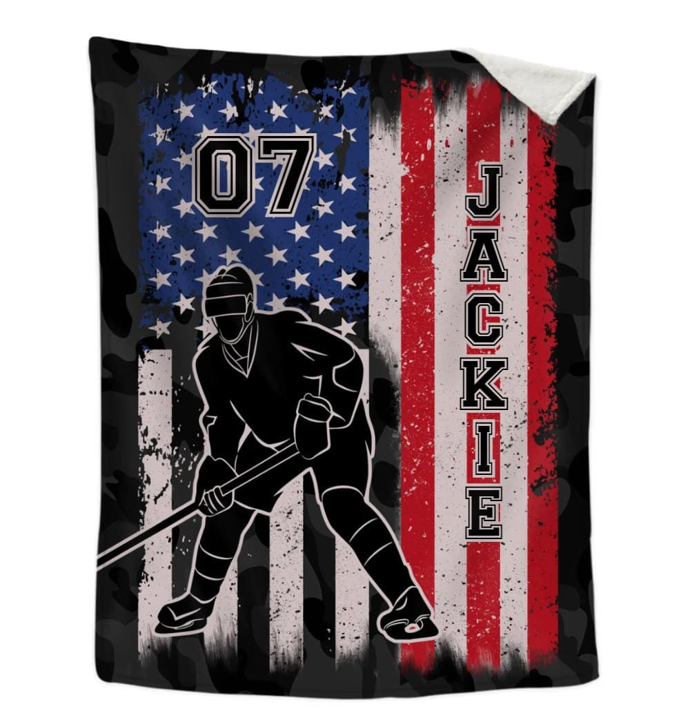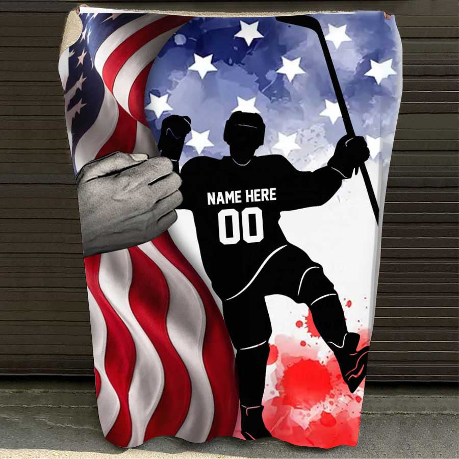 Custom Hockey Players US Vintage Flag Throw Blanket, Hockey Team Gift for Men BD0078