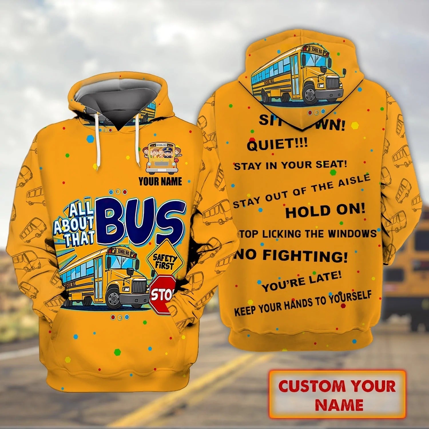 Custom Name 3D All About That Bus Zip Hoodie, School Bus Driver Hoodies Men Women SO1522