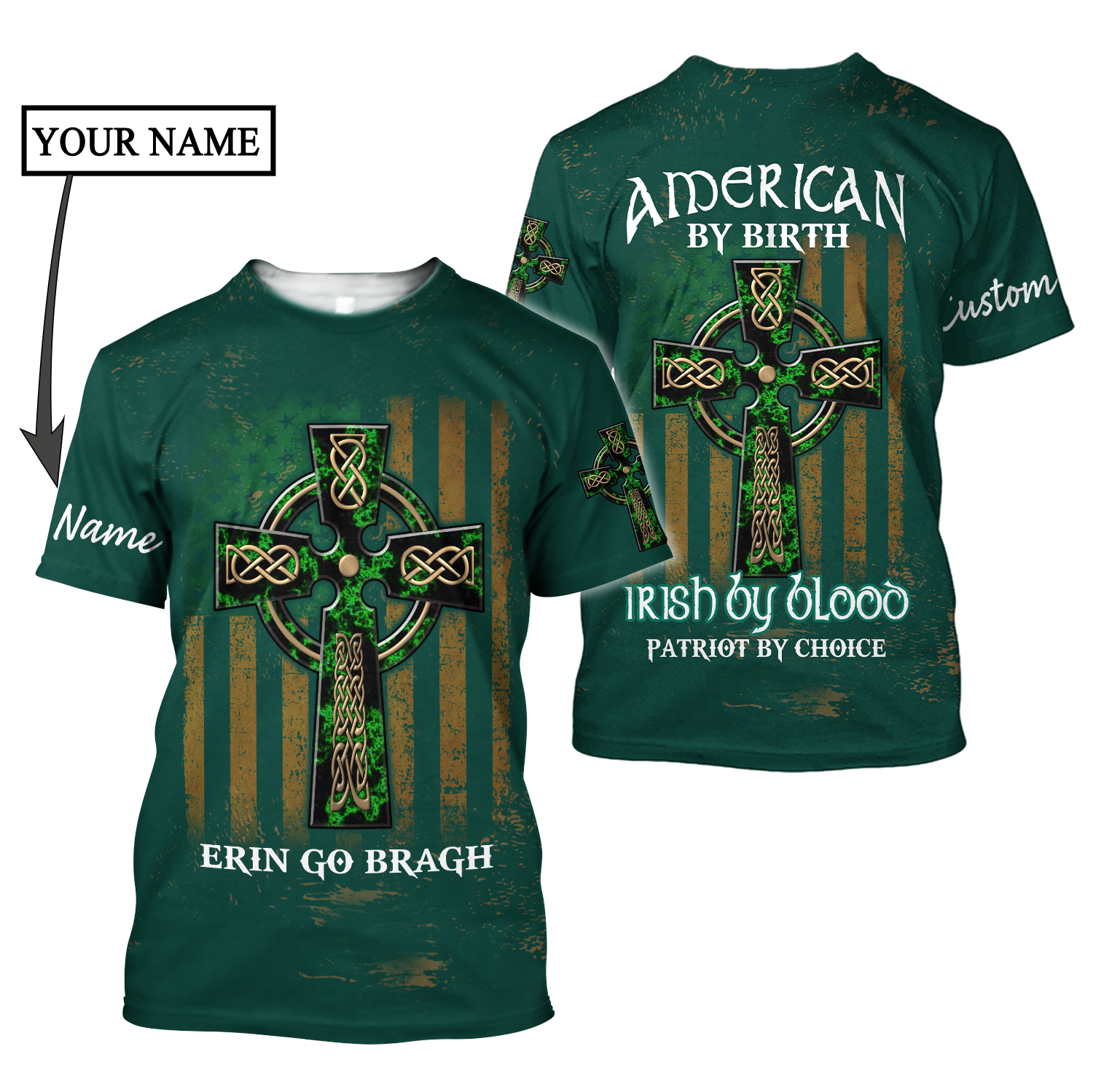 Custom Name Celtic Cross Flag American Erin Go Bragh Shirt, Personalized St Patrick's Day 3D Shirt PO0306
