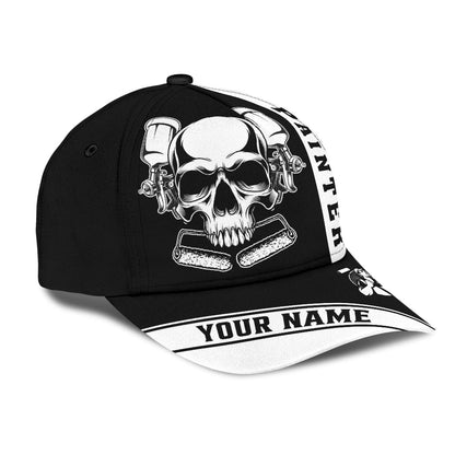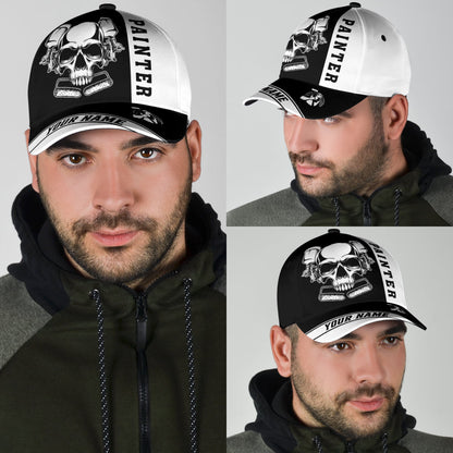 Custom Name Painter Classic Cap Black Skull, Painter Skull Hat Men Women CO0675