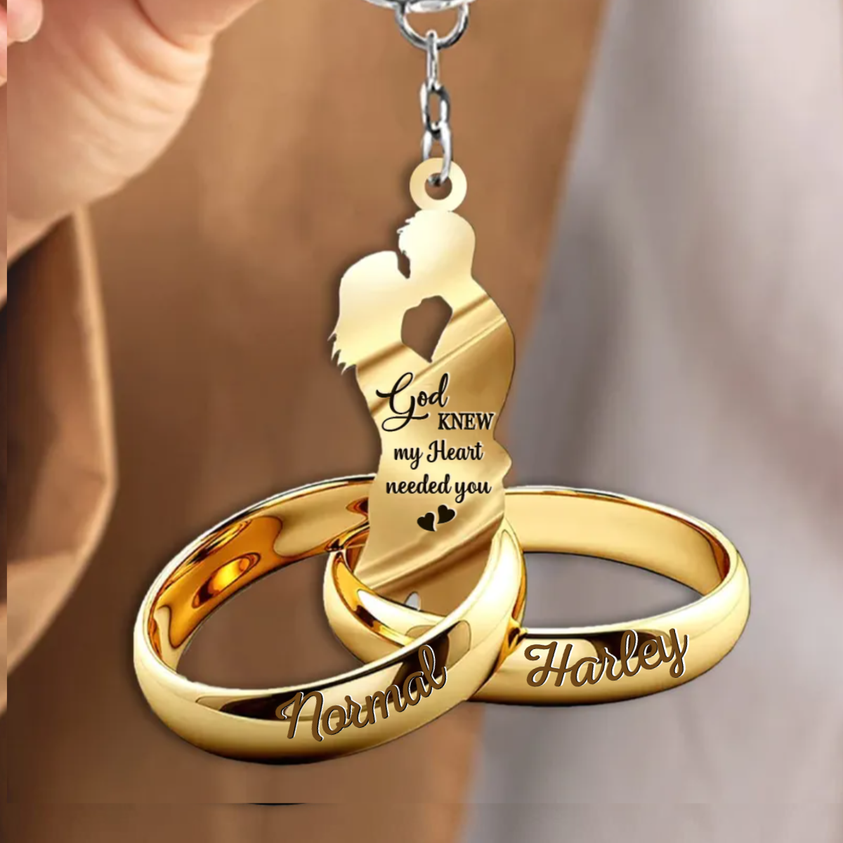 Custom Names Date Gift For Husband Wife Wedding Rings Couple Valentine Gift Acrylic Keychain KO0106