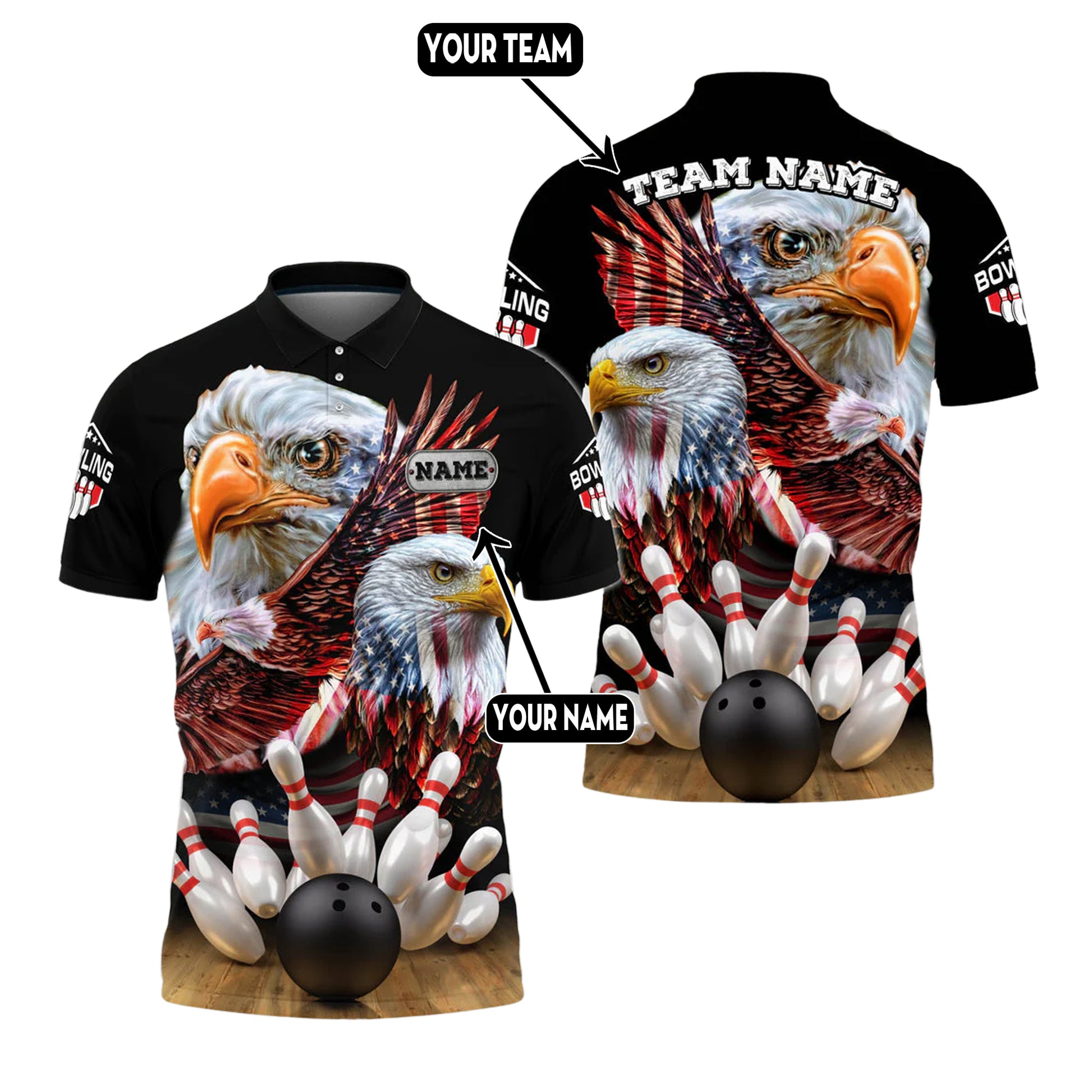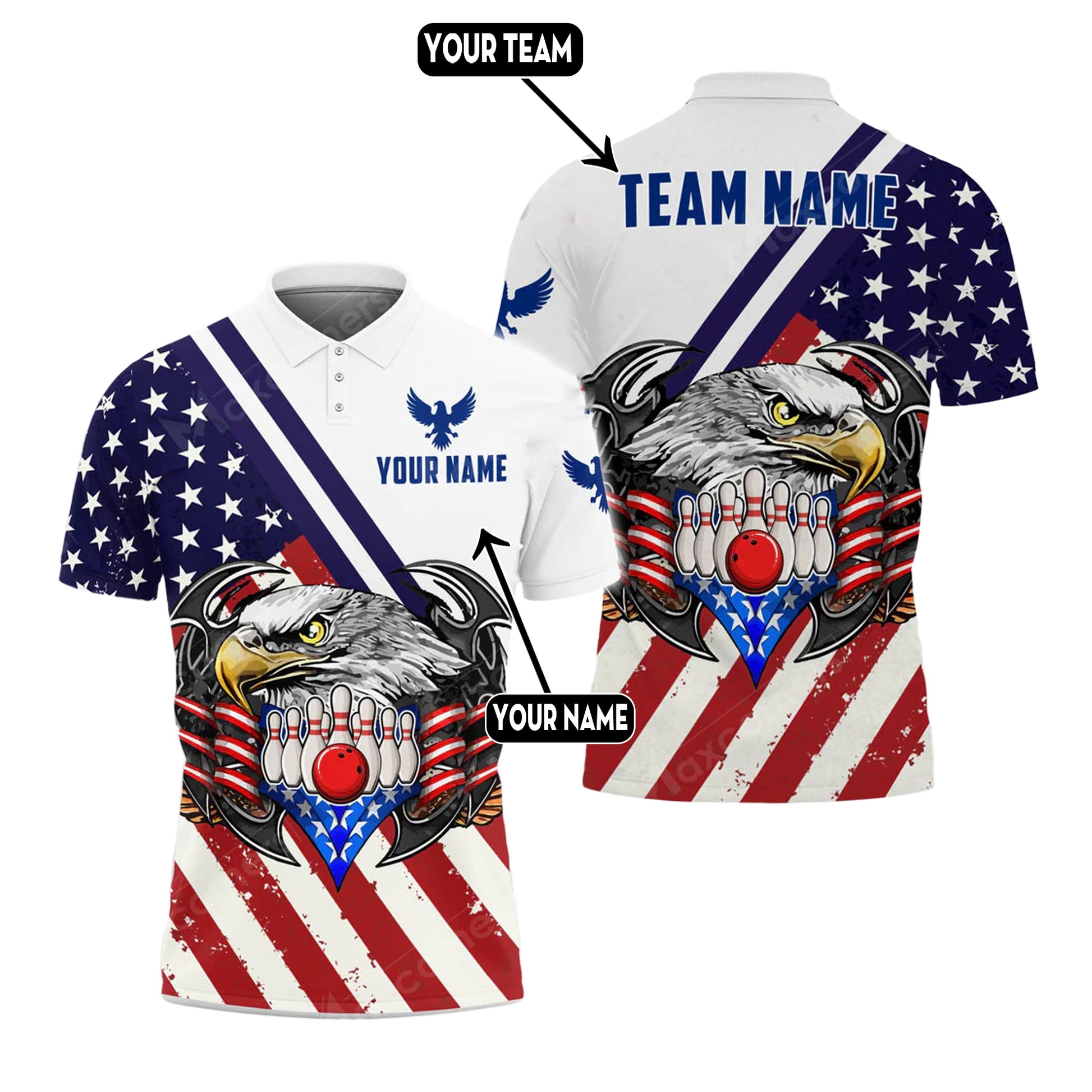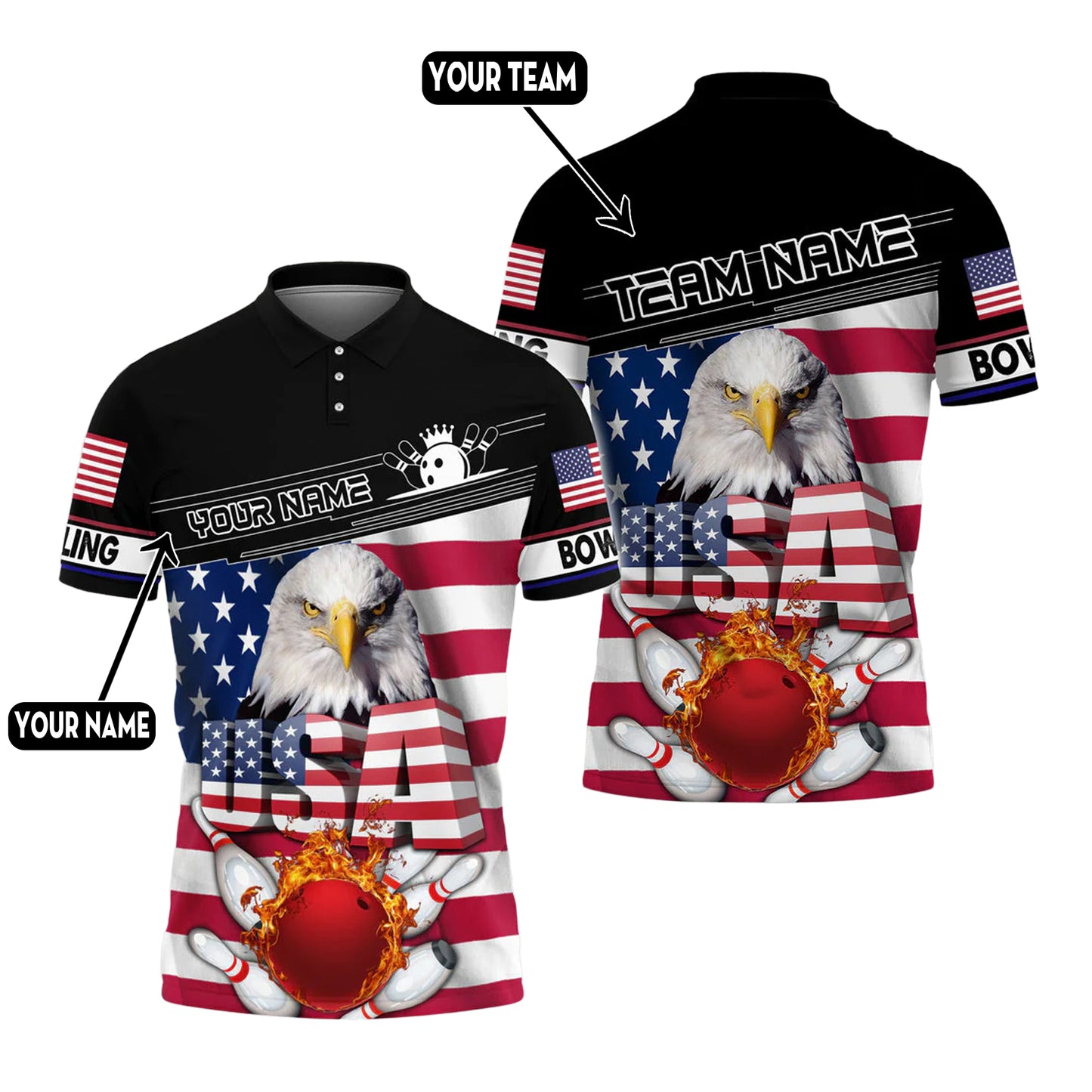 Custom Patriotic Bowling Polo Team Shirts BO0087