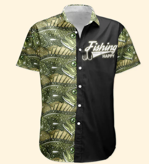 Custom Photo Bass Fish Fishing Makes Me Happy - Custom Photo Hawaiian Shirt HA0055