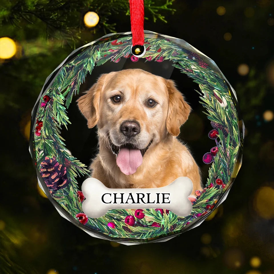 Custom Photo Journeying To The Rainbow Bridge, Leaving Love In Every Step - Memorial Personalized Custom Circle Glass Ornament -Sympathy Pet Ornament ON0405