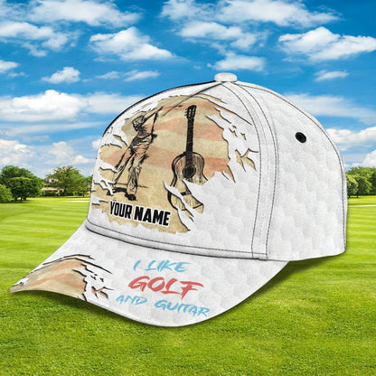 Custom With Name Baseball Cap For Golfer, I Like Golf And Guitar 3D Cap Hat, Golf Hat Mens CO0358