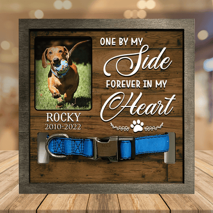 - Pet collar frames show the special moments in life with dogs and cats memorial. Display your best friend's collar together with your favorite photo in memory of loved. Perfect pet collar frame is the unique memory picture frames for your lovely pet. This is also a perfect sympathy gift to send to a friend or family who recently loss of dog or cat.