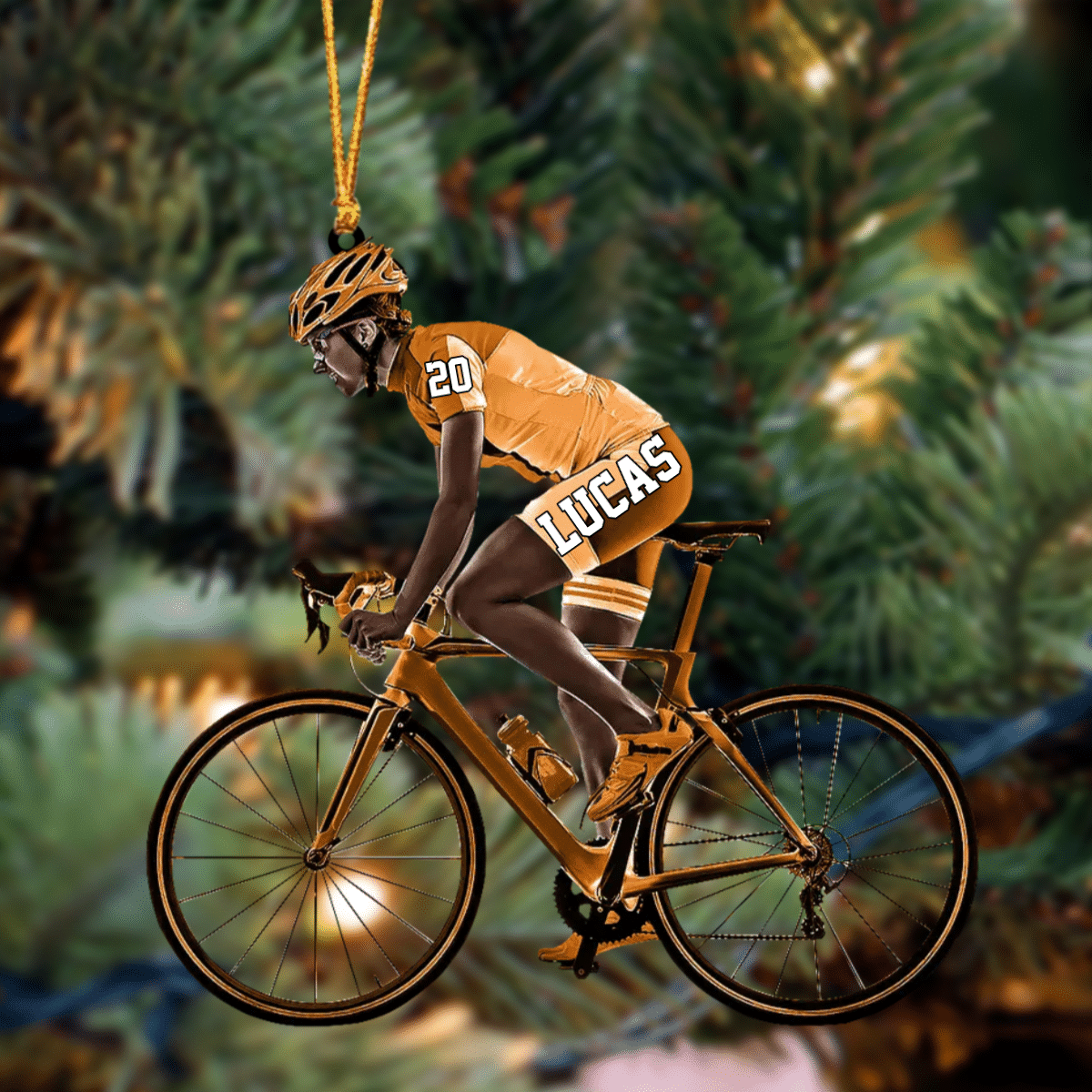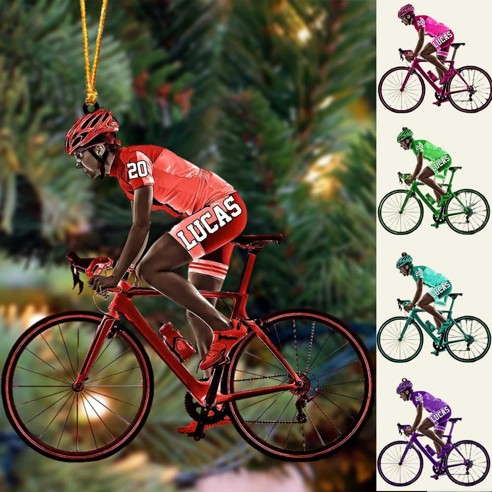 Customized African American Cyclist, Female Cyclist Bike Riding Acrylic Christmas Ornament Gift For Cyclists OO4236