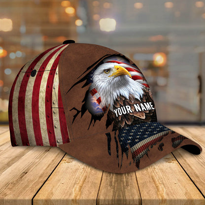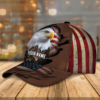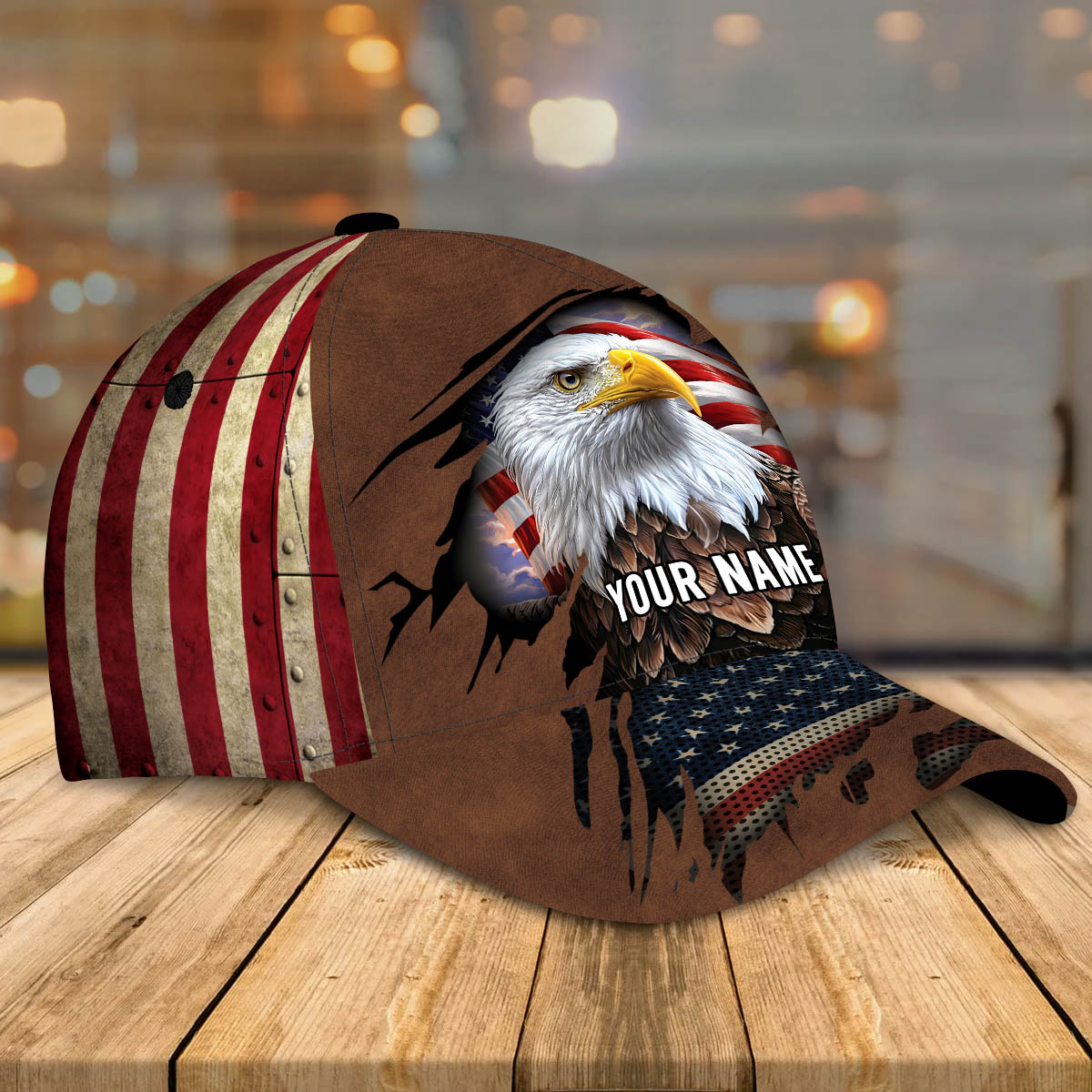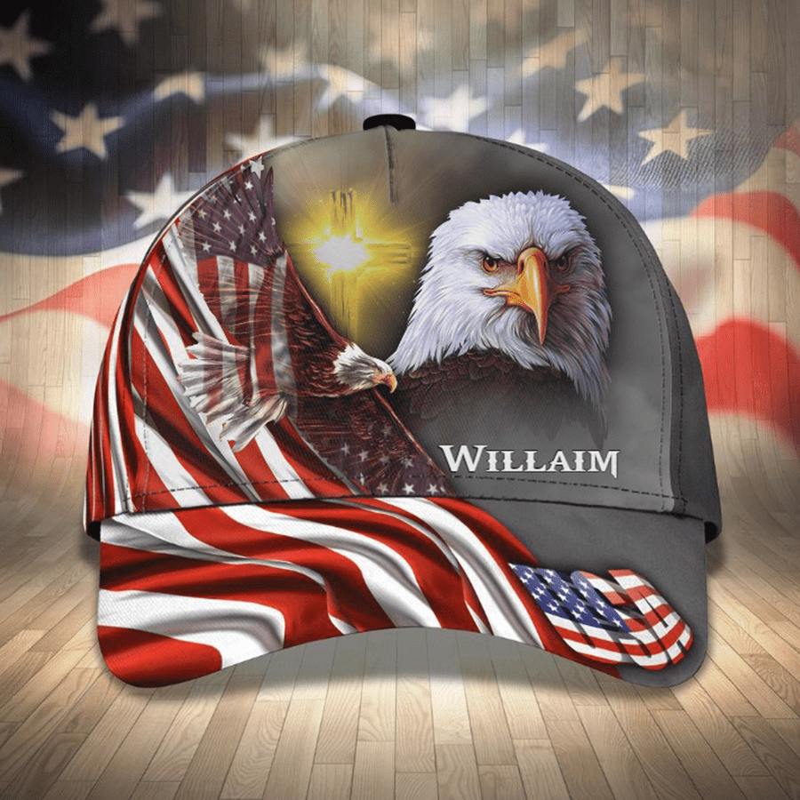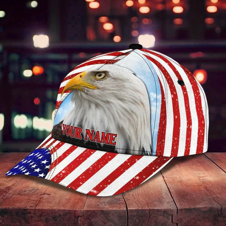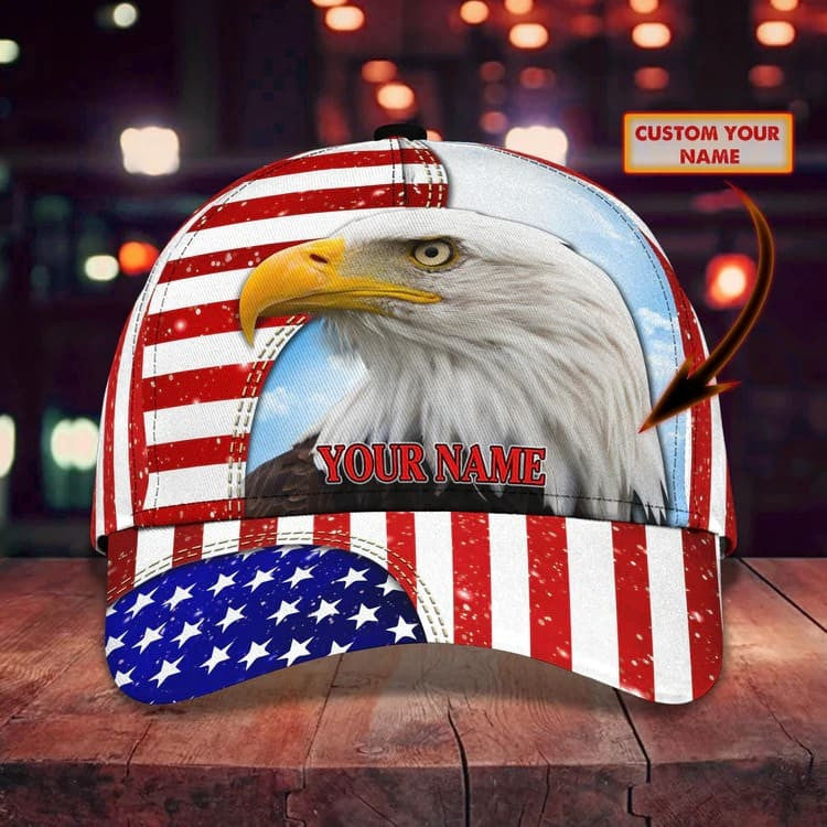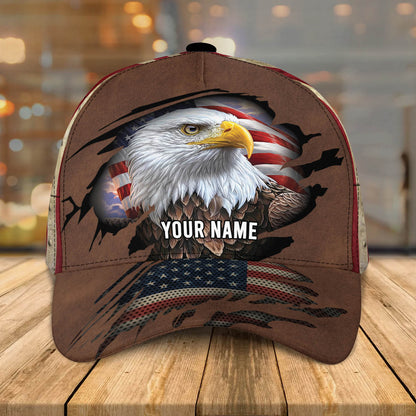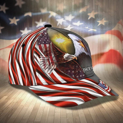 Customized Eagle Cap American Flag Pattern, Eagle Hat for Dad, Eagle 3D baseball Cap for Veteran SO0165