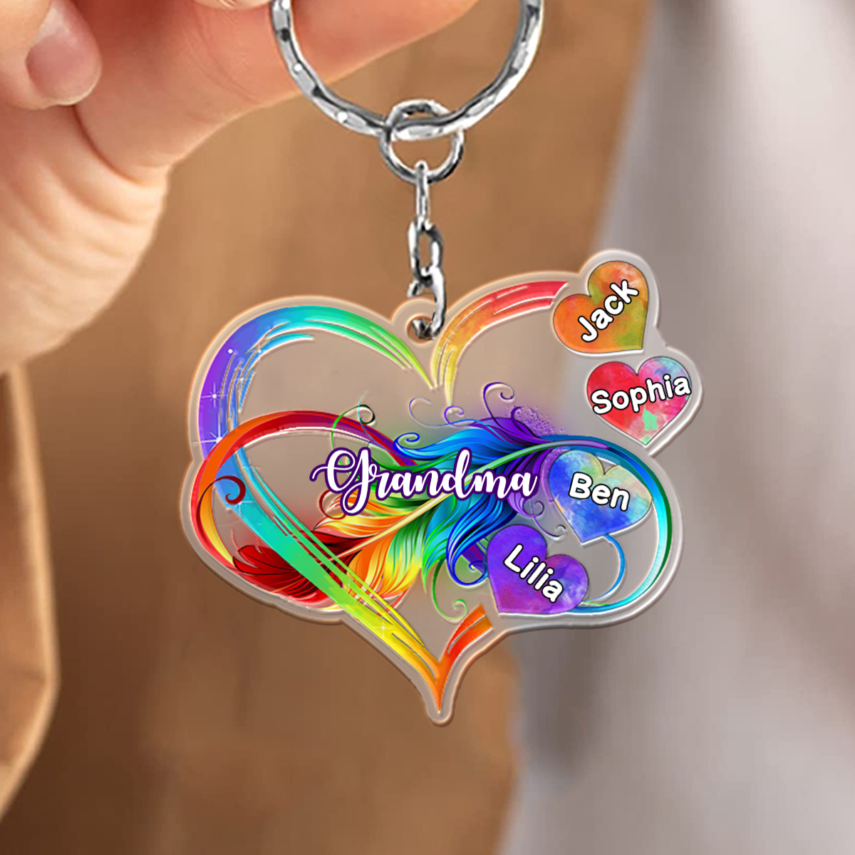 Customized Grandma Mom Heart Custom Nickname Names Mothers Valentine Day Familia Gift Acrylic Keychain KO0275