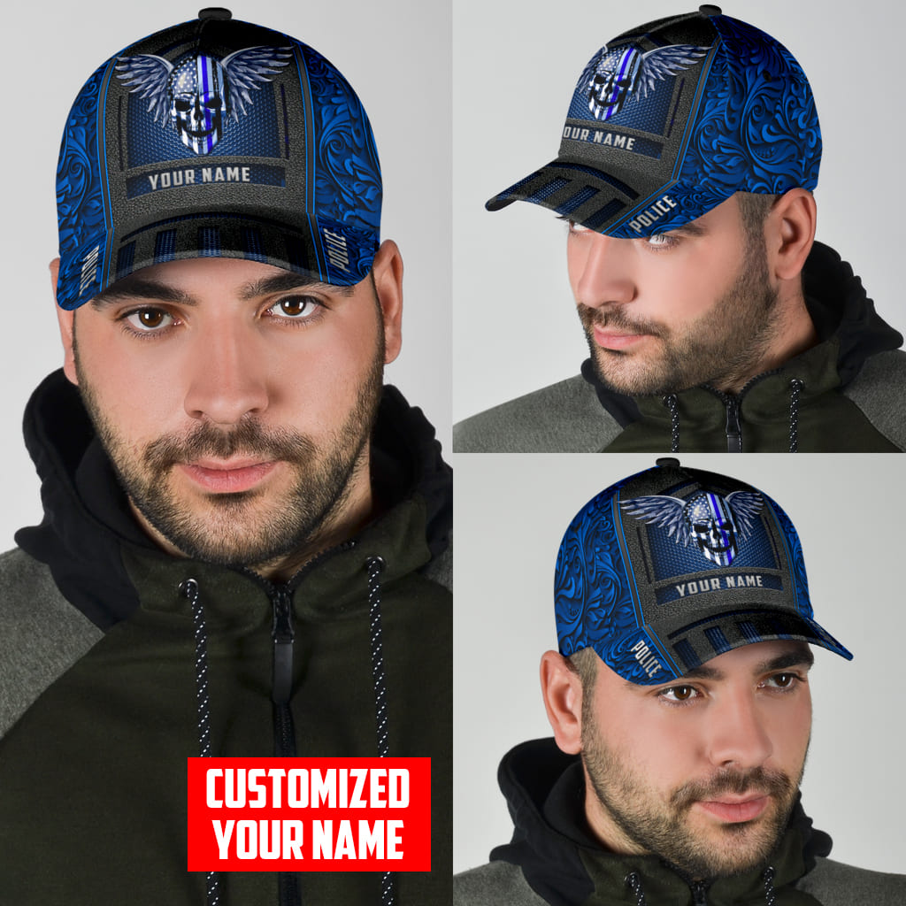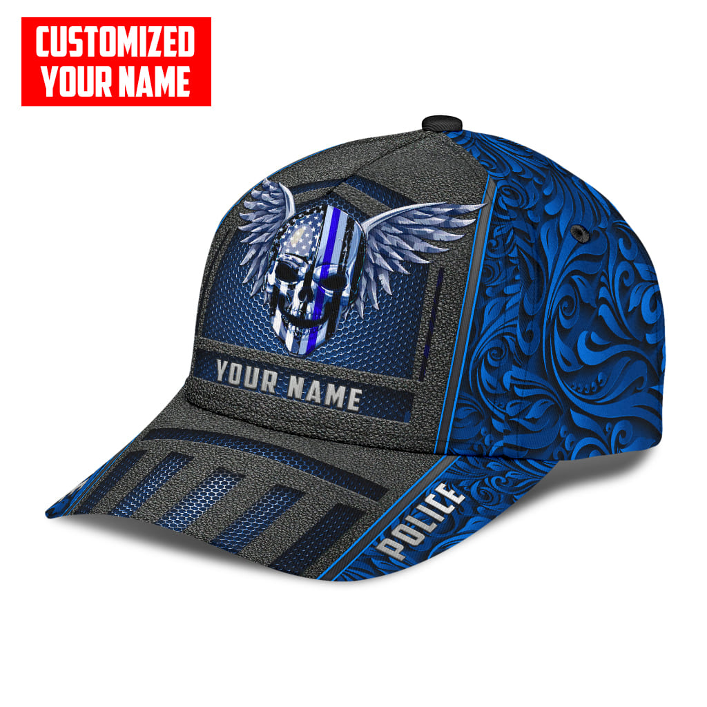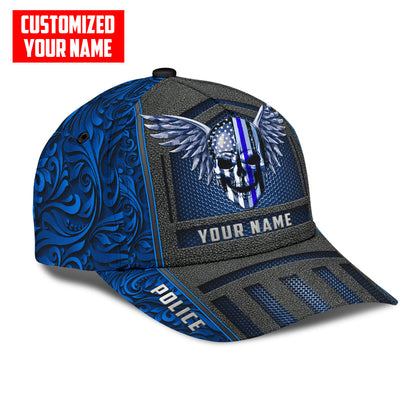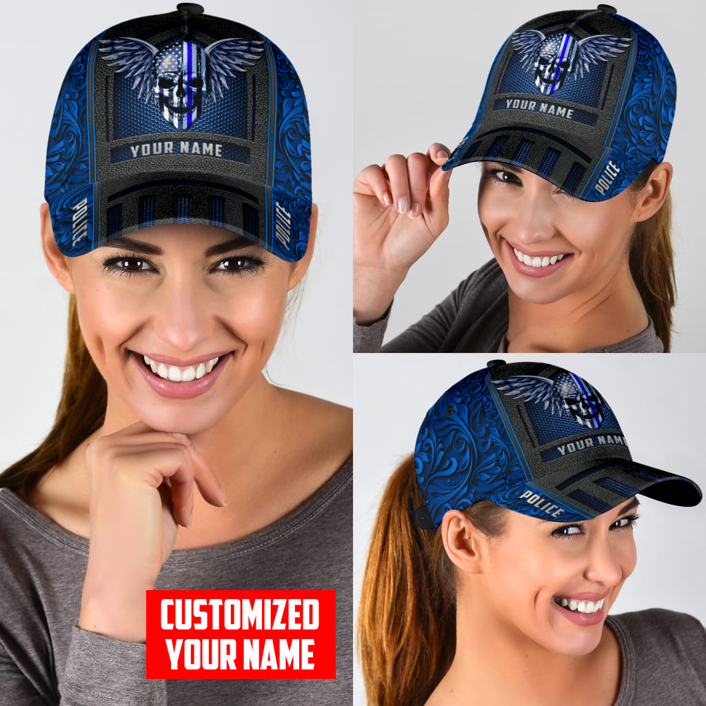Customized Name Police Skull Classic Cap Blue Skull Baseball Cap Hat CO0644