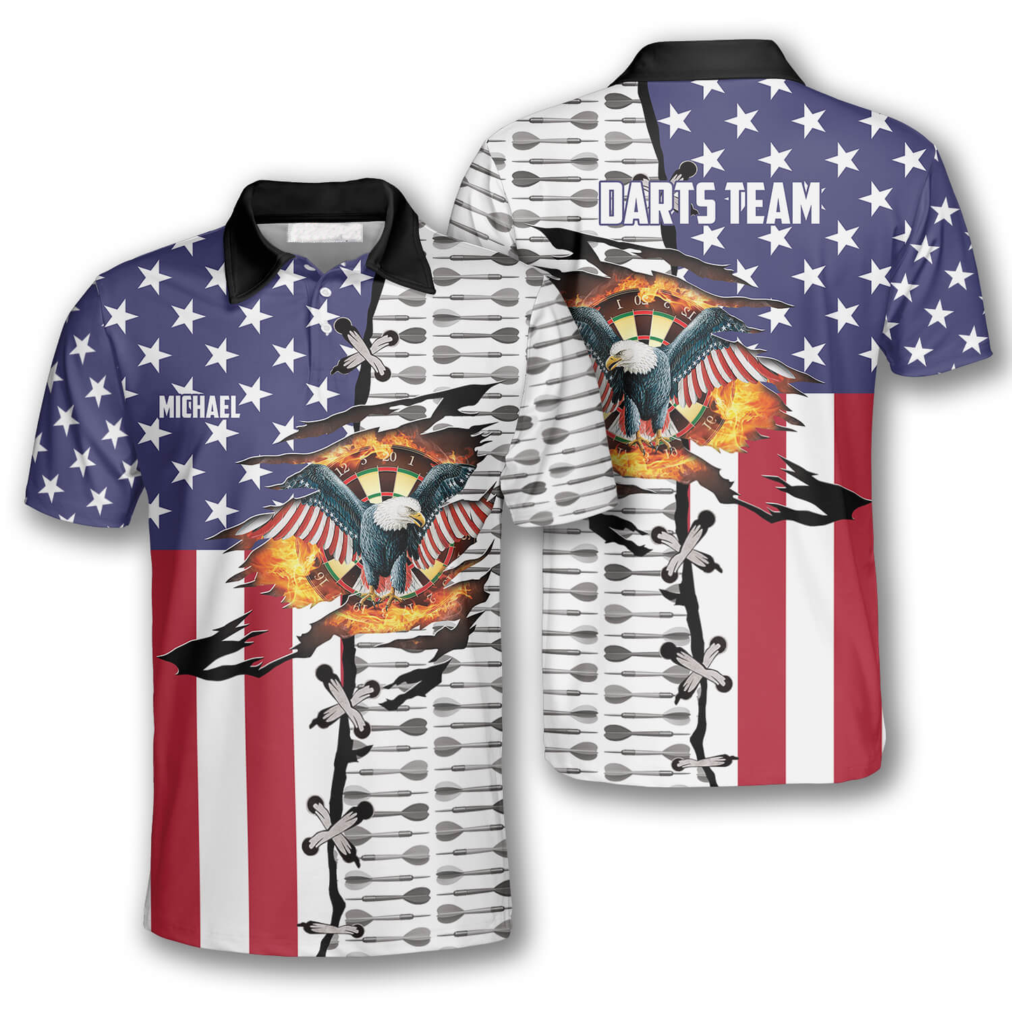 Dart Arrow Pattern Eagle Flag Custom Darts Polo Shirts, Flag American Dart Shirt DMO0192