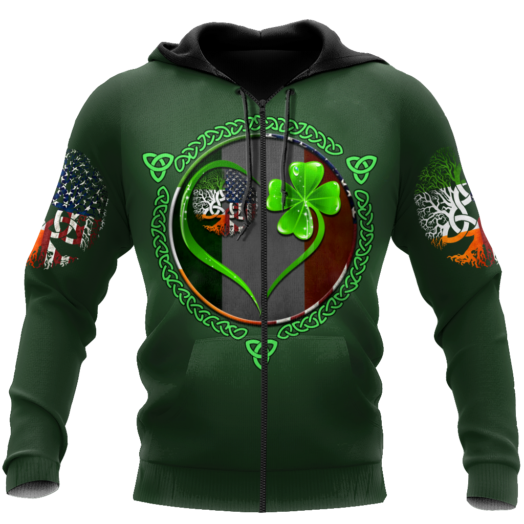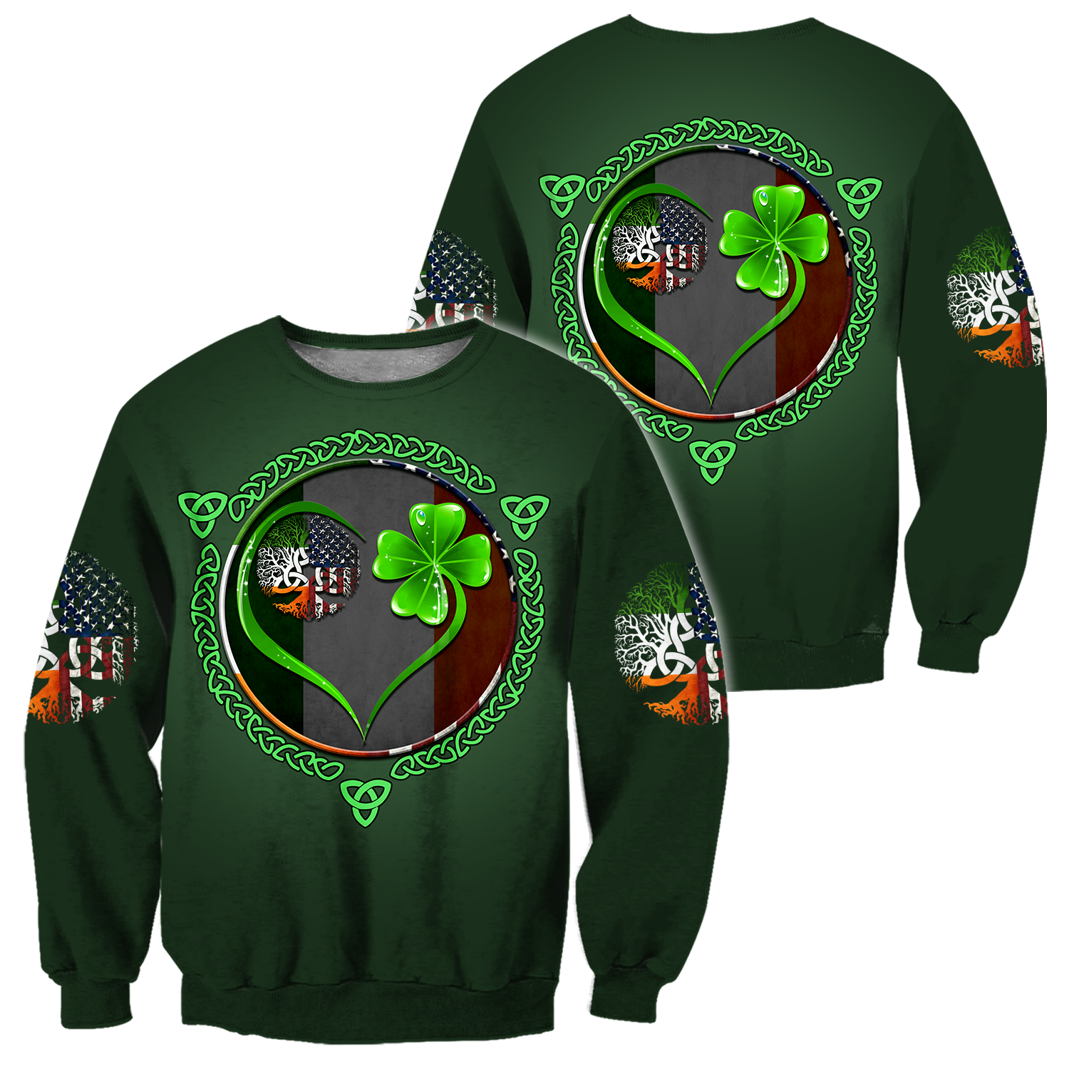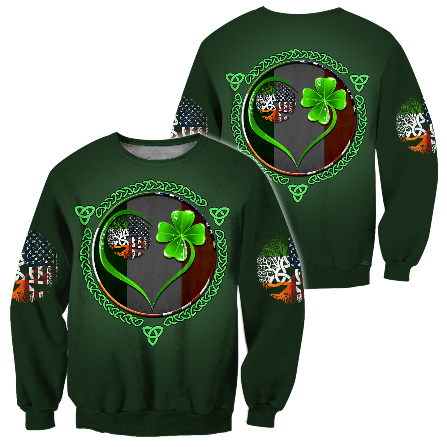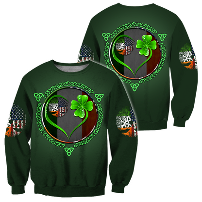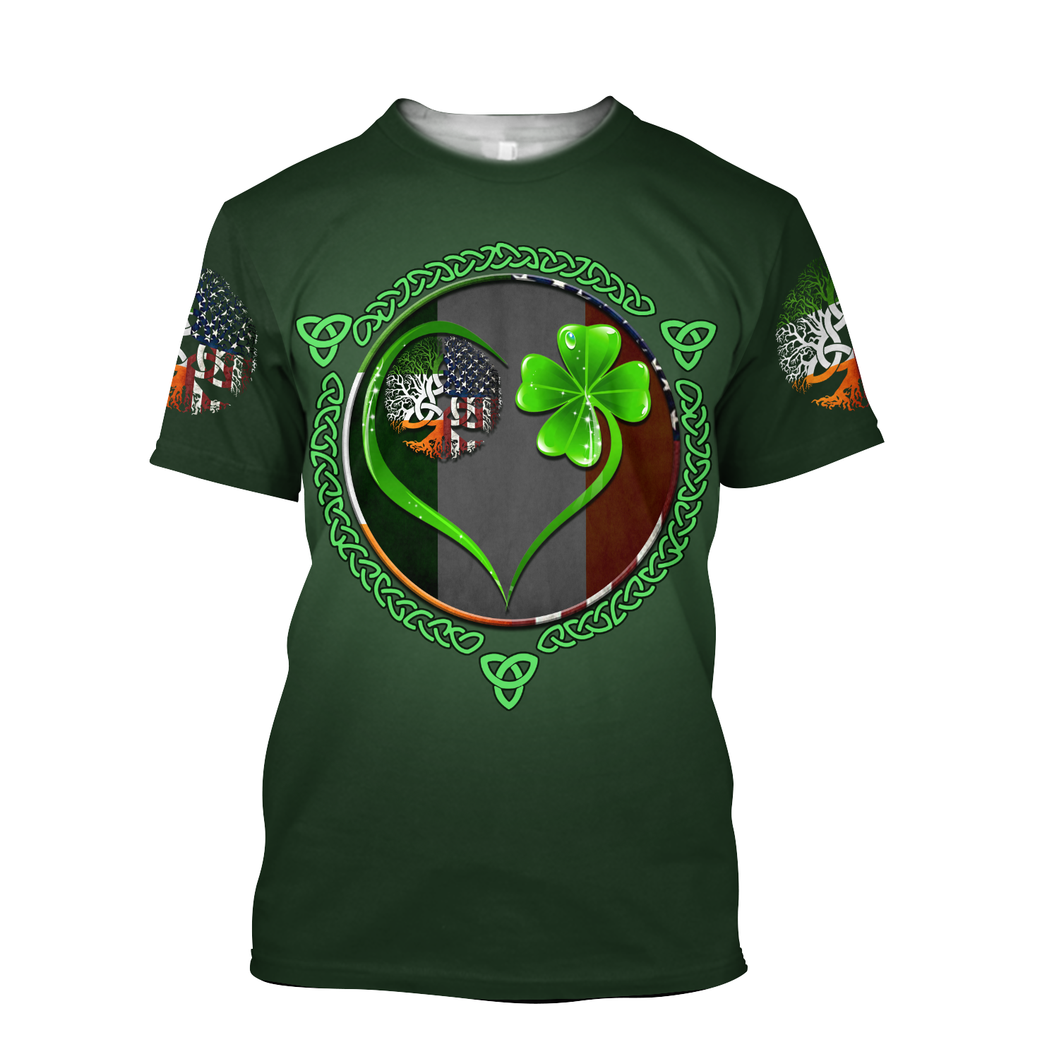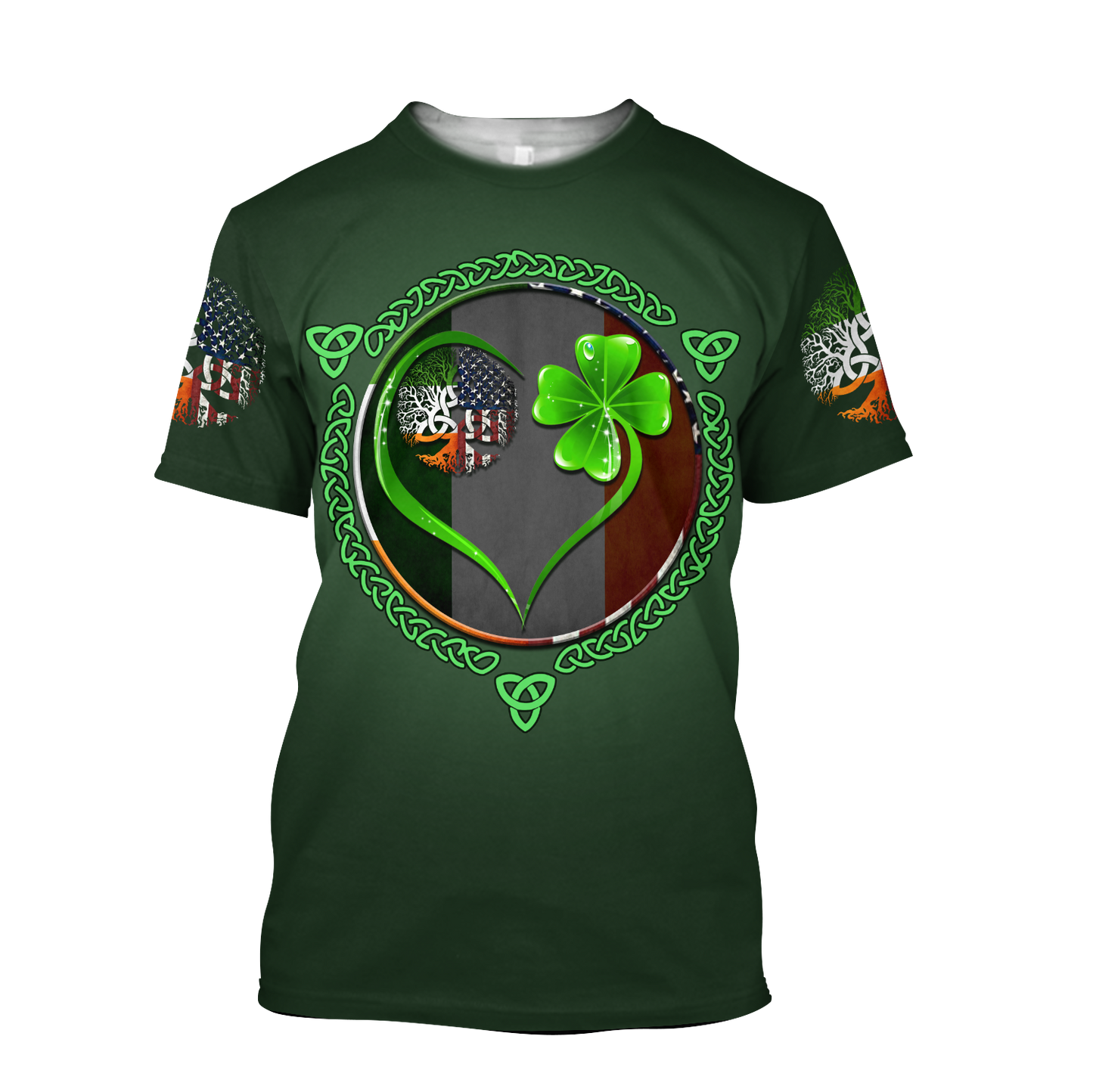 Lasfour Premium Irish Saint Patrick's Day Printed Unisex Shirts, Heart Shamrock Lucky Ireland USA Flag Shirt PO0257