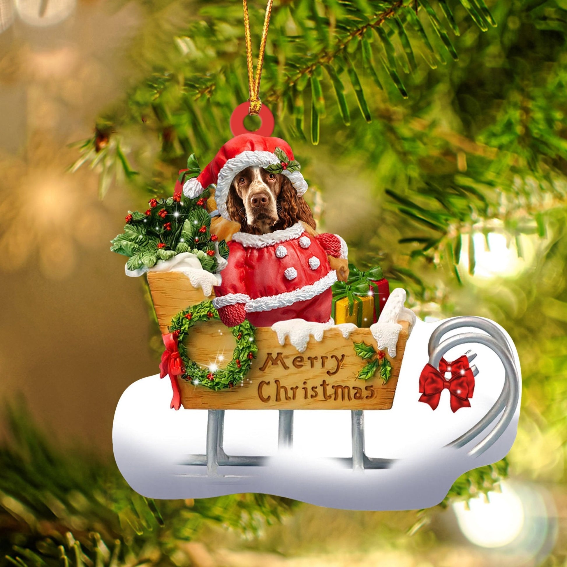 English Springer Spaniel Sitting On A Cute Sleigh Ornament Flat Acrylic Funny Dog Ornament OO2964