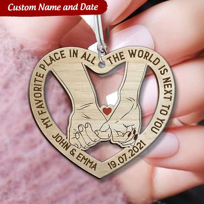 Favorite Place In All The World Is Next To You Couple Personalized Wooden Keychain KO0121