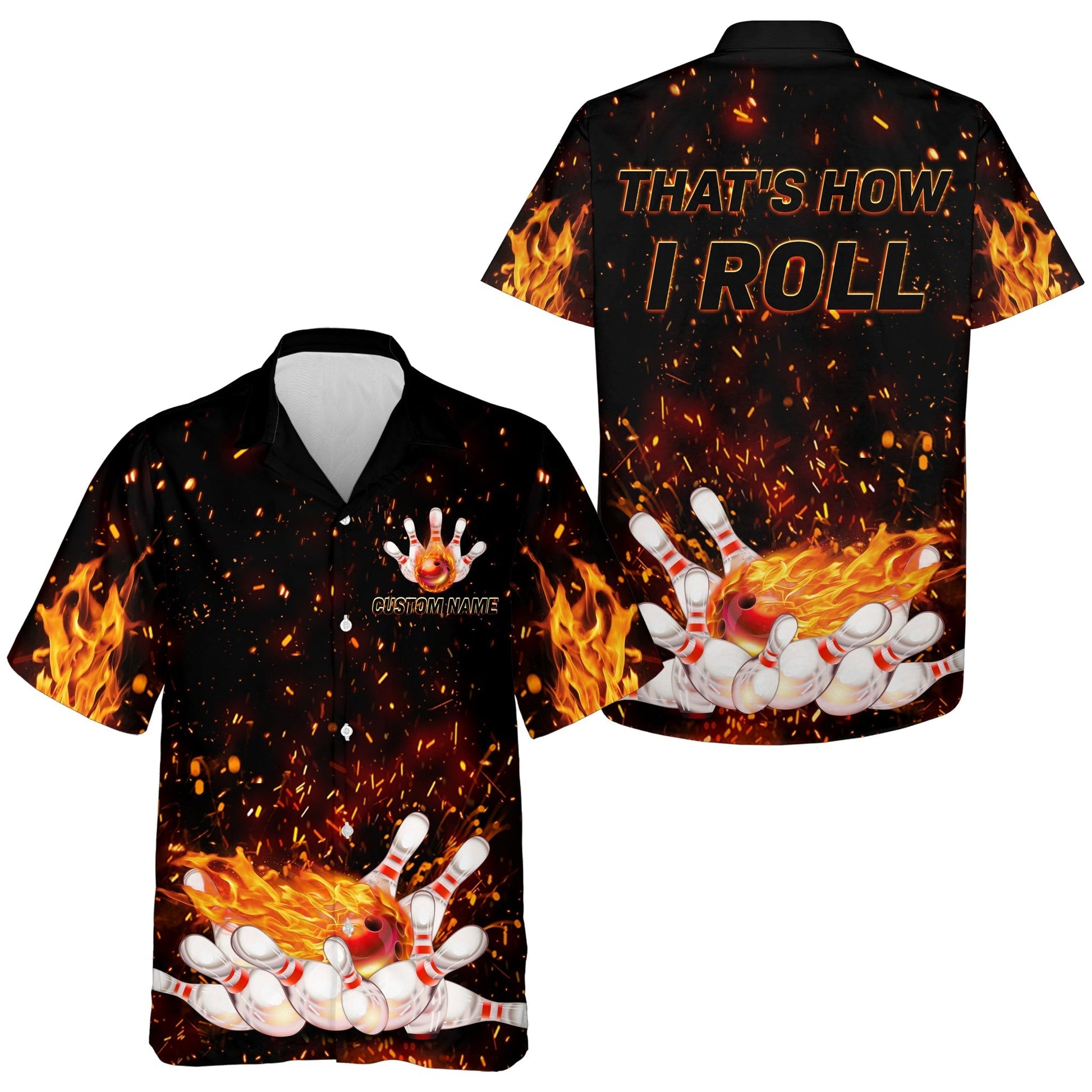 Flames Hawaiian Bowling Shirt for Men Women, That's How I Roll, Custom Name Fire Bowlers Jersey HO2789