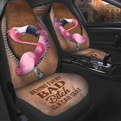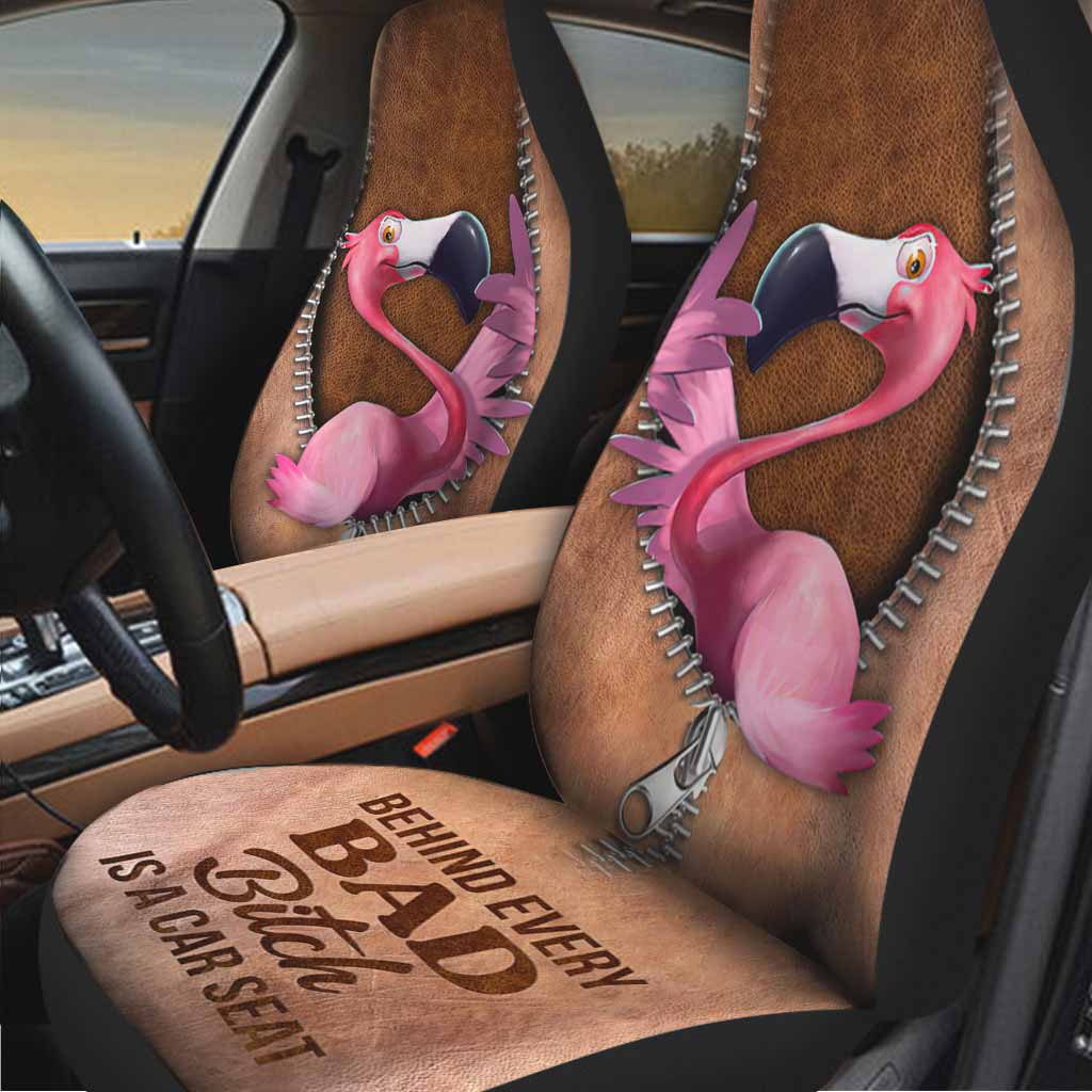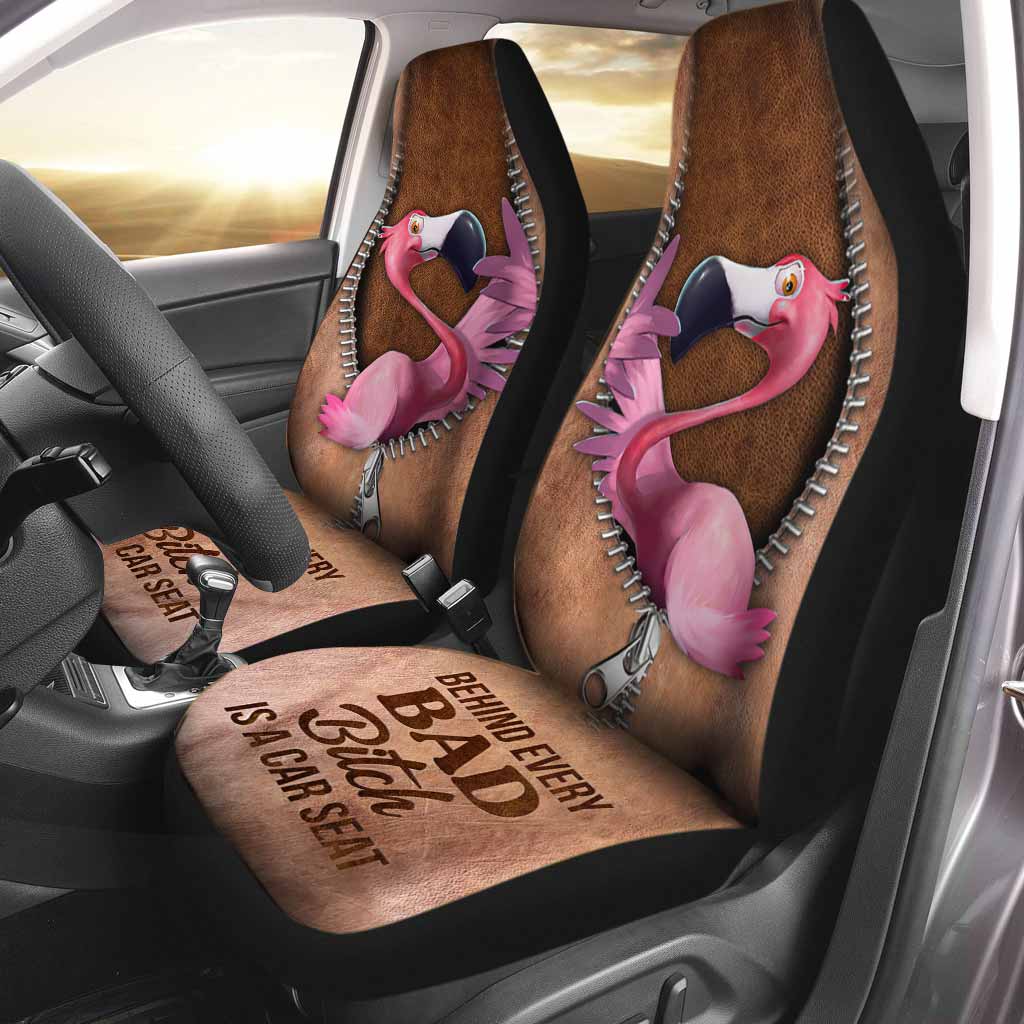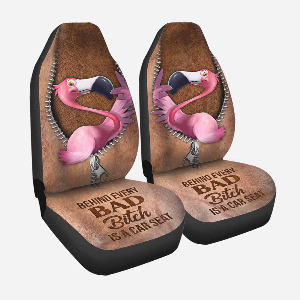 Flamingo Covers Front Seat Car With Leather Pattern, Behind Every Bad, Funny Car Seat Cover For Him Her SO0312