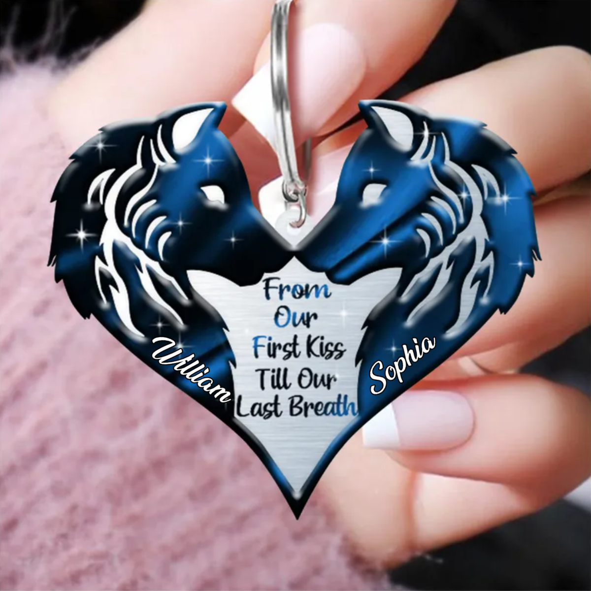From Our First Kiss Till Our Last Breath Couple Wolf Personalized Stainless Acrylic Couple Keychain KO0138