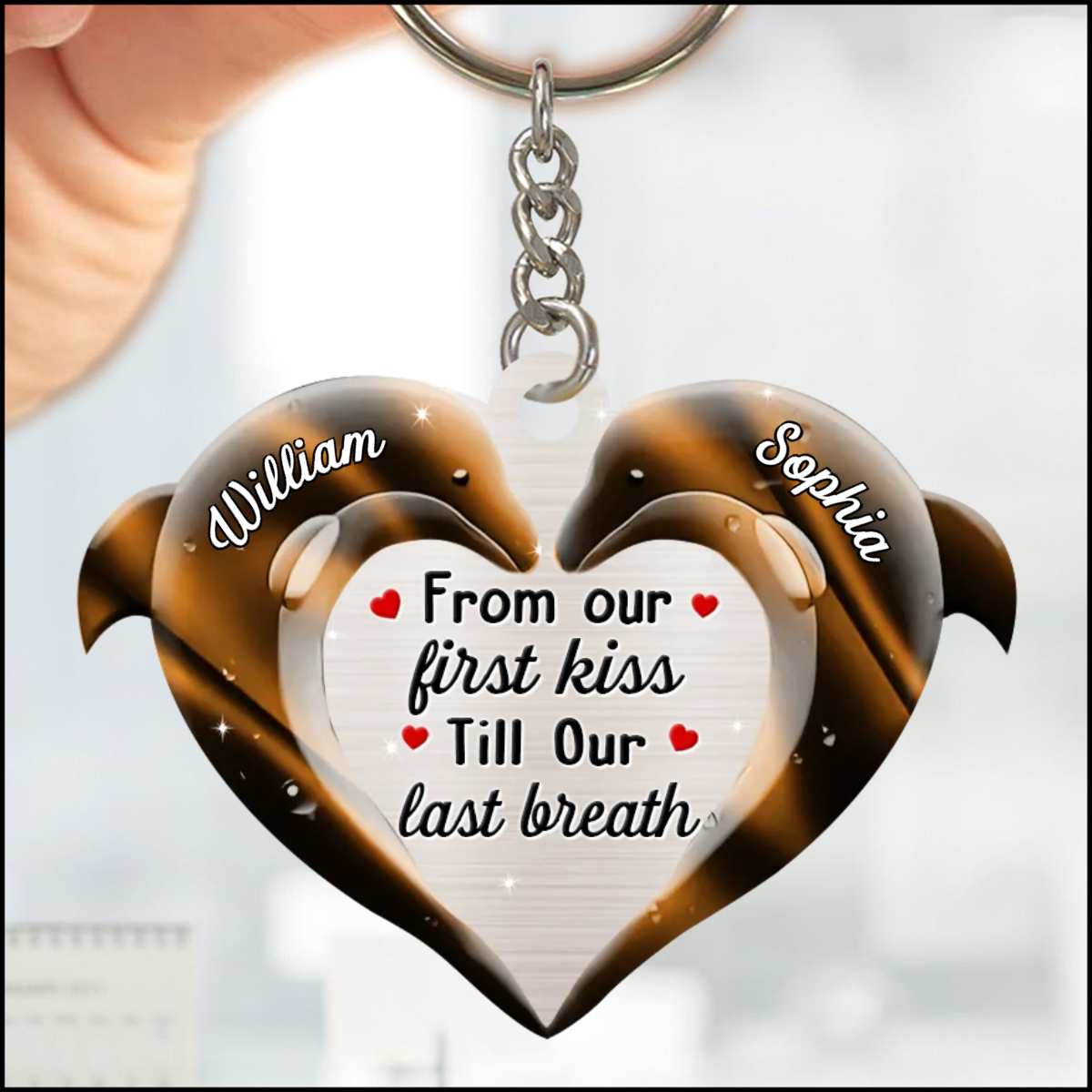 From Our First Kiss Till Our Last Breath Dolphin Couple Keychain, Personalized Couple Keychain Gift KO0128