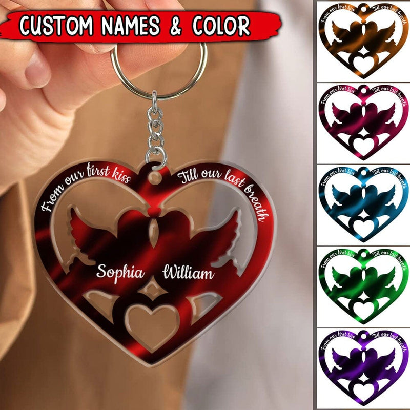 From Our First Kiss Till Our Last Breath Dove Couple Valentine's Day Gift For Couples Custom Acrylic Keychain KO0089