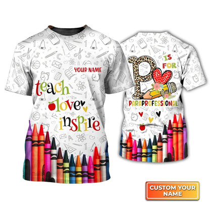 Funny 3D Teacher Shirt, P Is For Paraprofessional, Teach Love Inspire Personalized Name 3D Tshirt TO2296