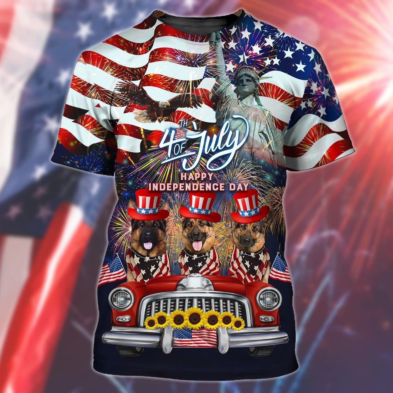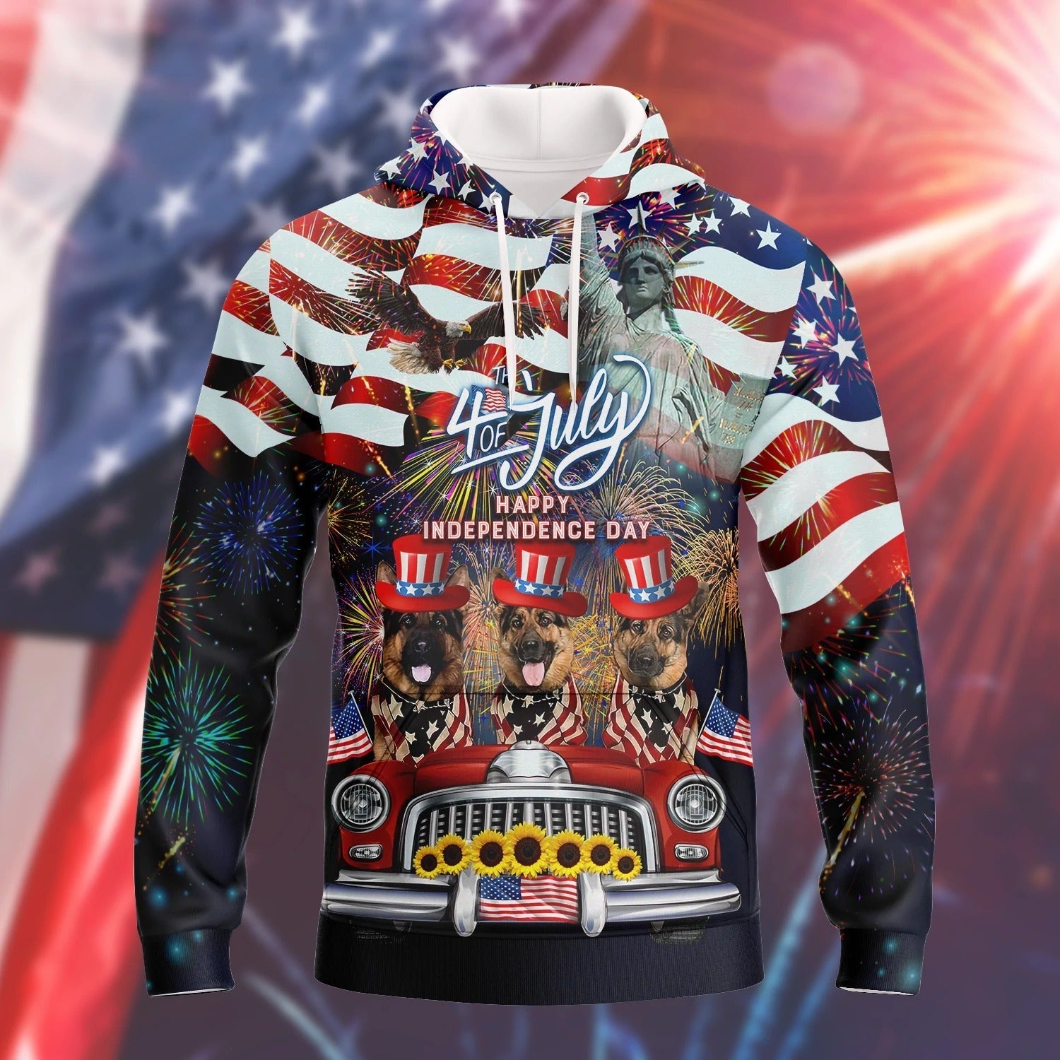 German Shepherd American Hawaiian Shirt - Independence Day Is Coming 3D All Over Print T Shirt - 4Th Of July 3D Hoodie TO0167