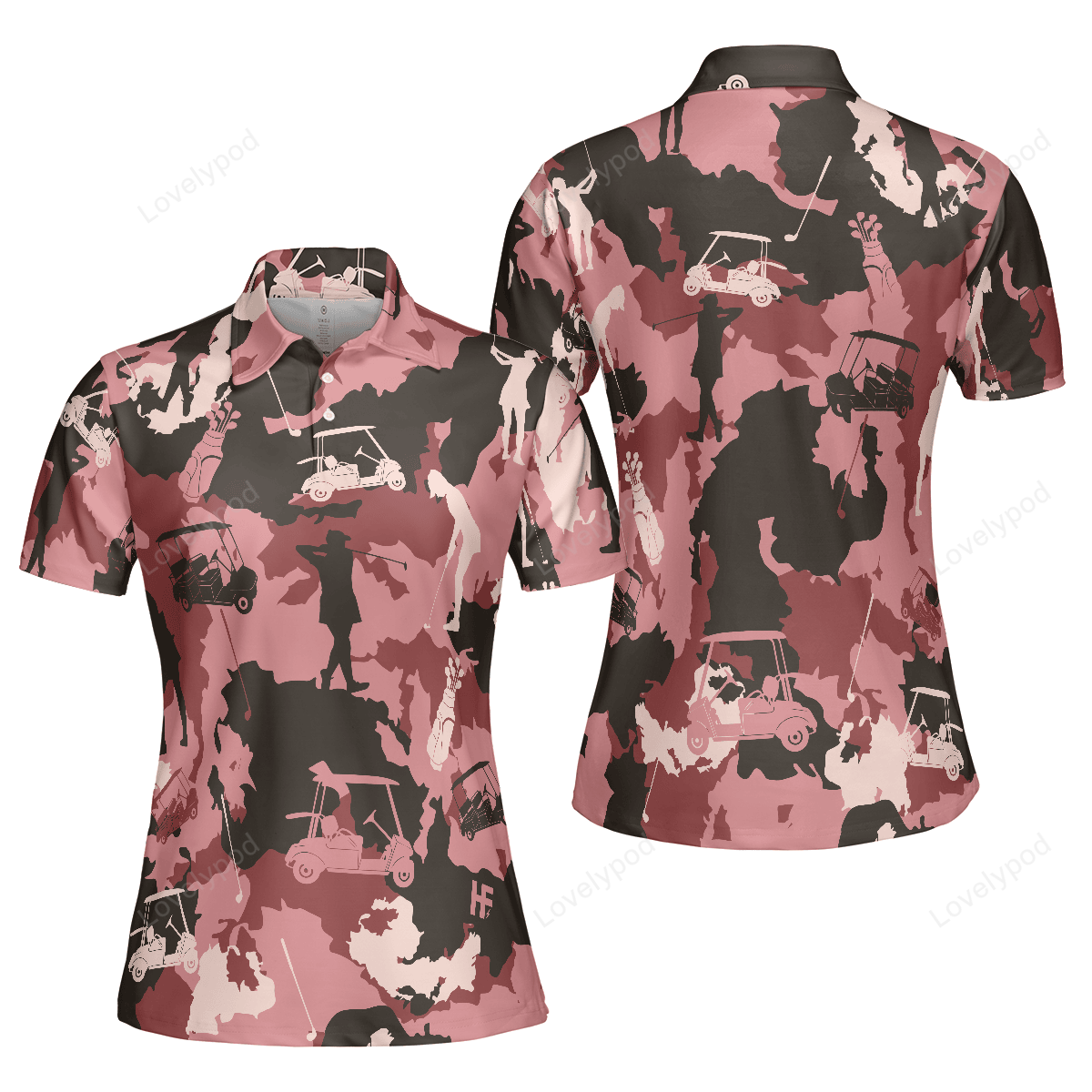 Golf girl camouflage short sleeve women polo shirt, pink camo golf shirt for ladies, cool golf gift for women GY0124