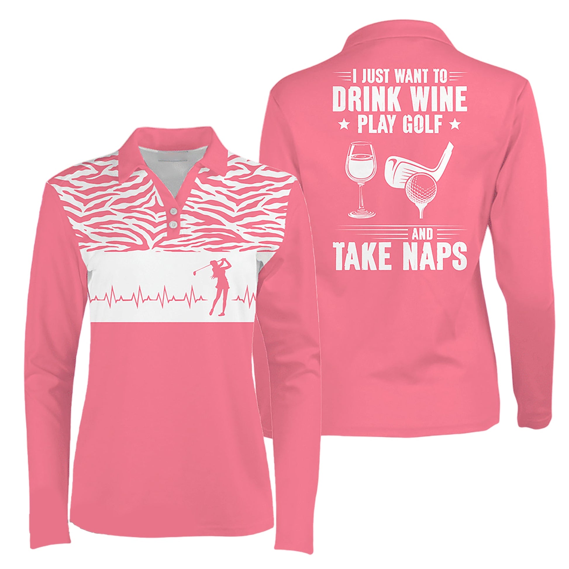 Golf Heart Beat I Just Want To Drink Wine Play Golf And Take Naps Women Golf Love Long Sleeve Polo Shirt For Woman I0299