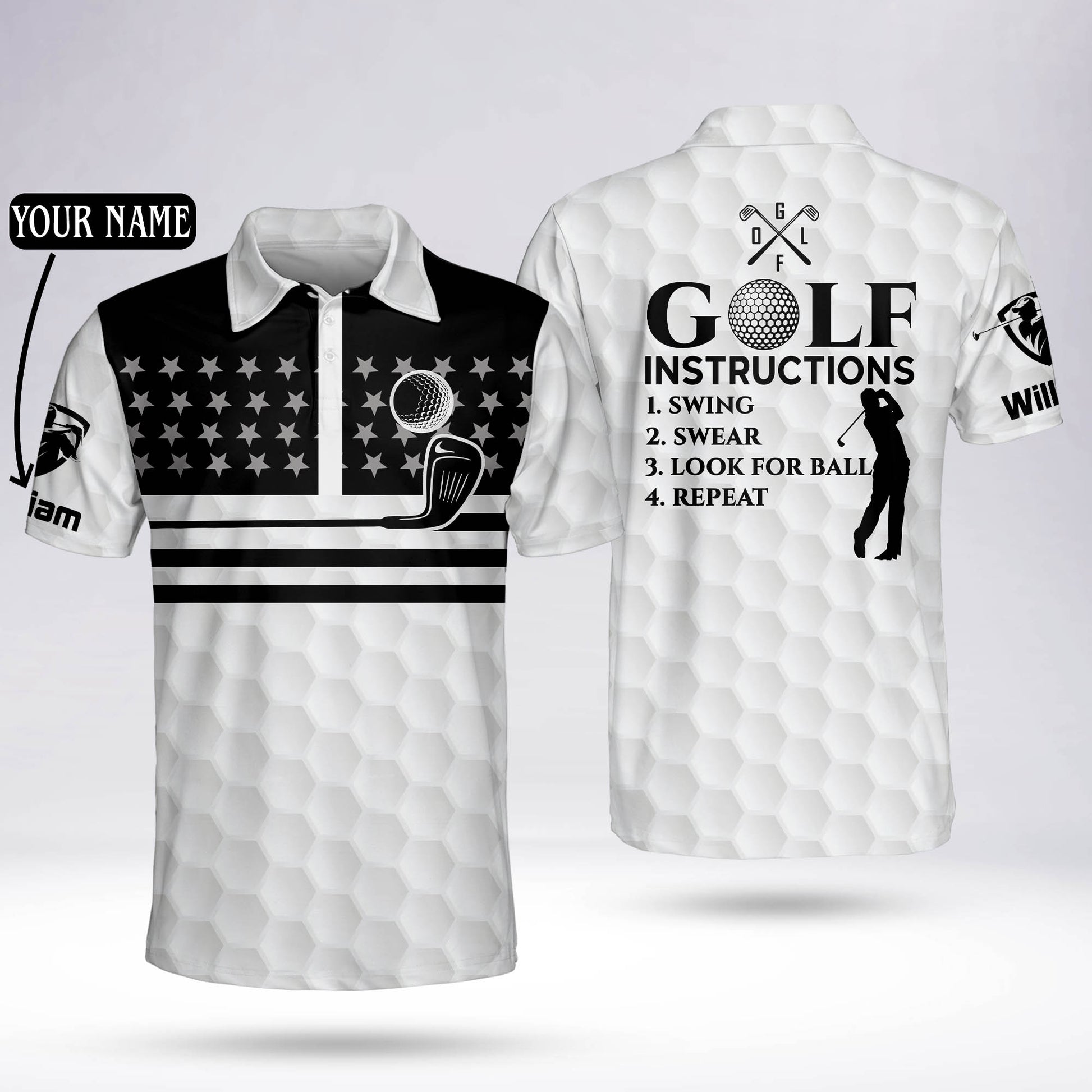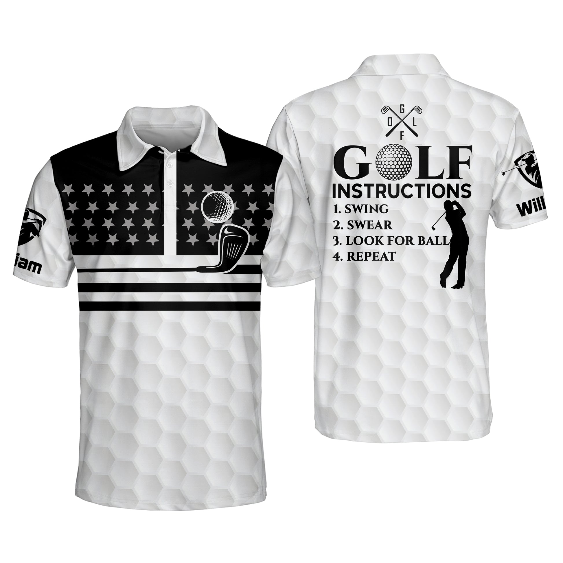 Golf Instructions Swing Swear Look For Ball Repeat Golf Polo Shirt GM0009