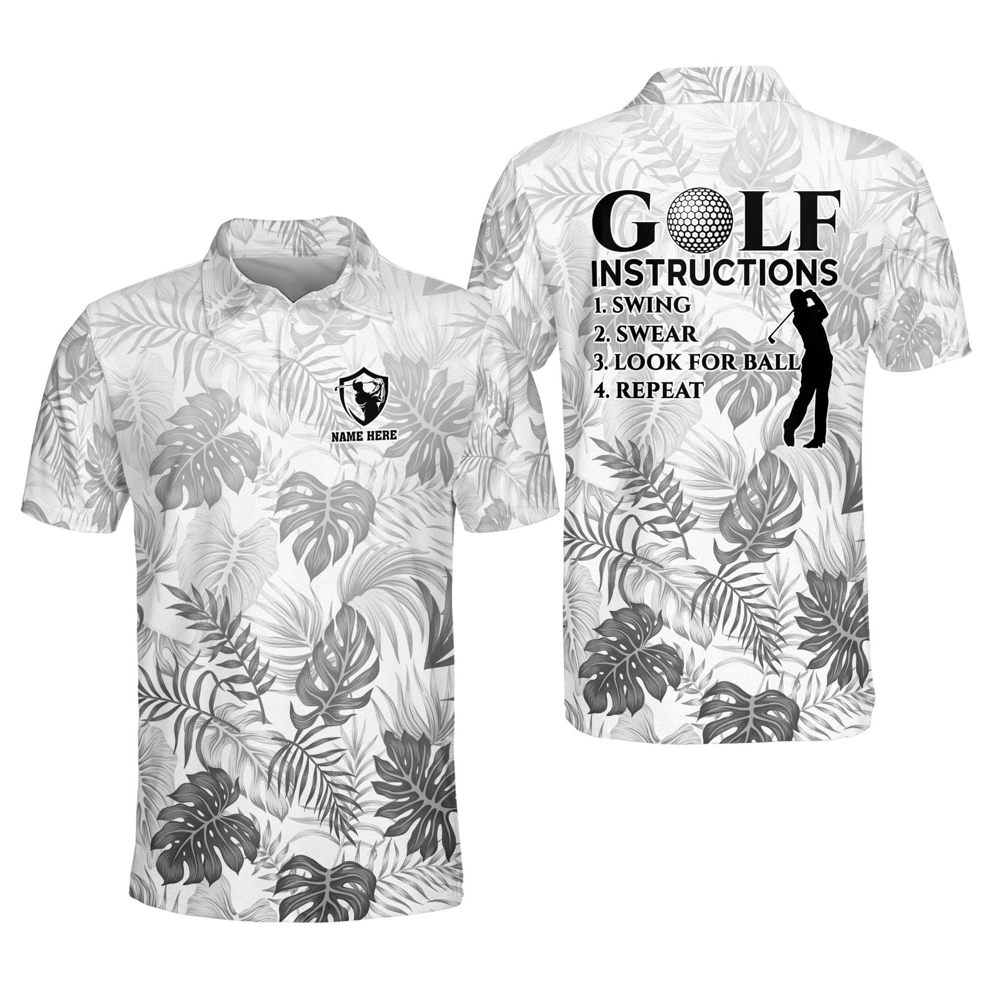 Golf Instructions Swing Swear Look for Ball Repeat Golf Polo Shirt GM0307