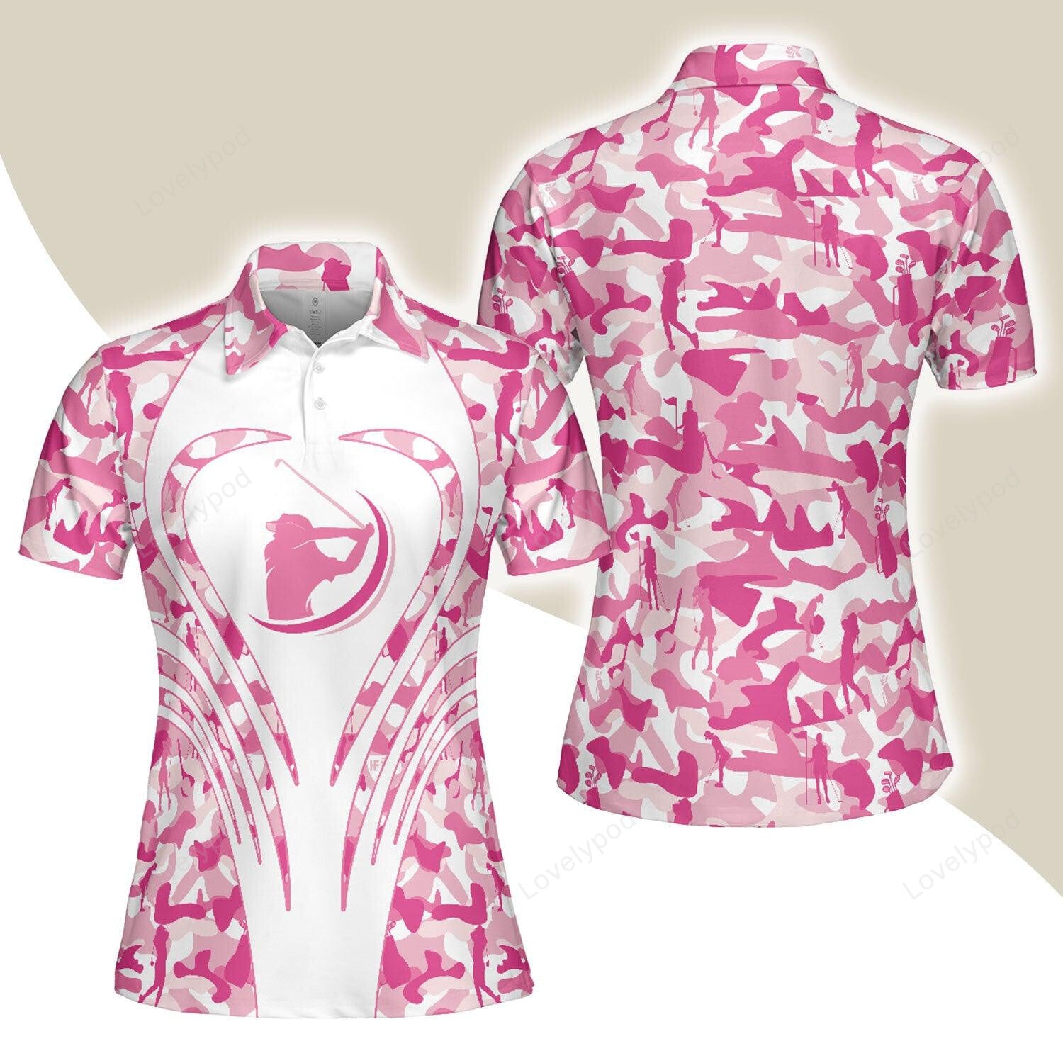 Golf women polo shirt - white pink camouflage thinning layout women polo shirt, best golf shirt for golfers GY0135
