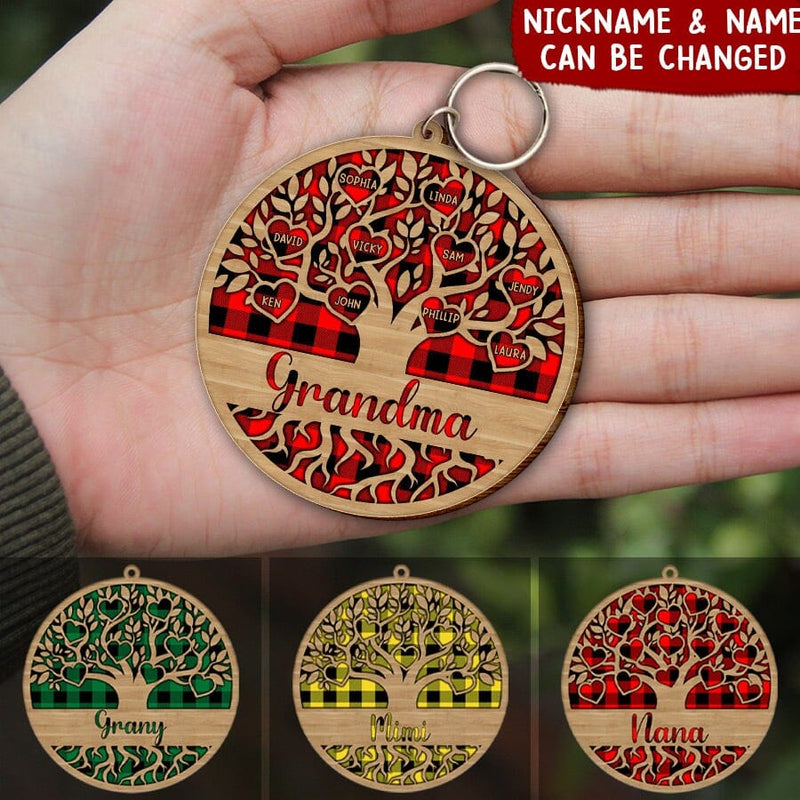Grandma Tree Heart Personalized Custom Wooden Keychain KO0278
