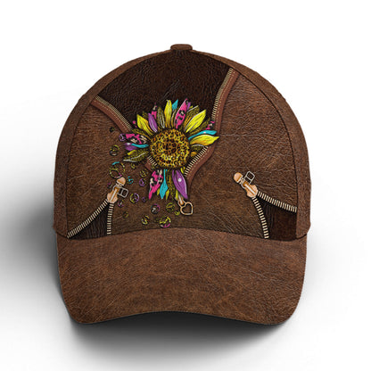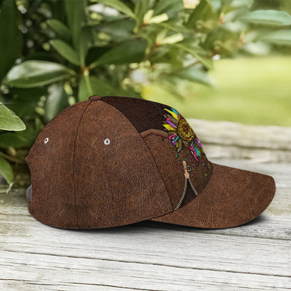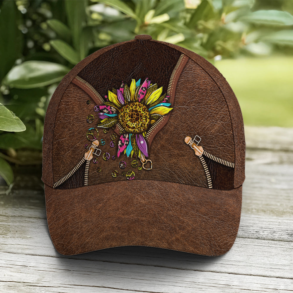 Hippie Sunflower Leather Style Baseball Cap Lasfour CO0886