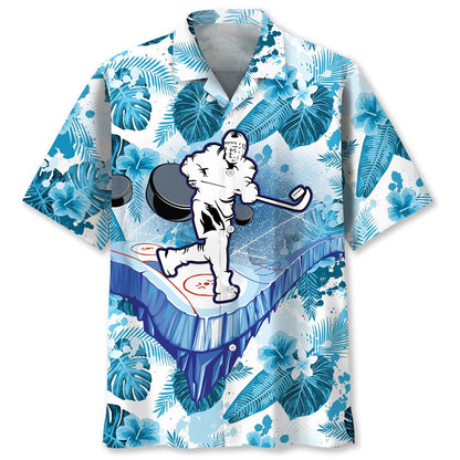 Hockey White and Ice Hawaiian Shirt, Gift for Men Love Hockey HO3702