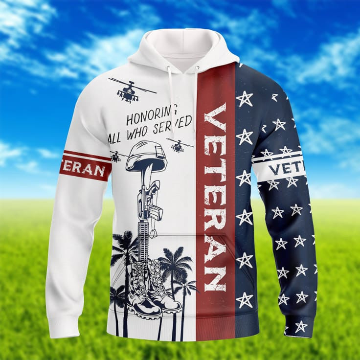 Honoring All Who Served Veteran Hawaiian Shirt, 3D Hoodie Veteran Pattern, Patriotic Veteran Gifts TO2751